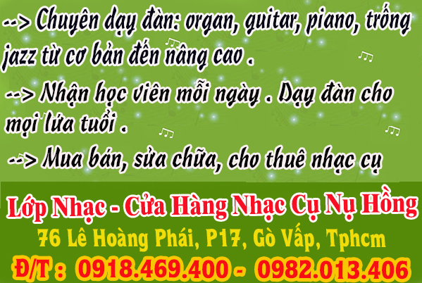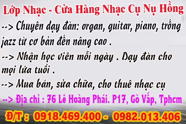 ♥ Tham gia các lớp học nhạc cụ : guitar, organ, piano, trống jazz,... tại Lớp Nhạc Nụ Hồng . Lớp
