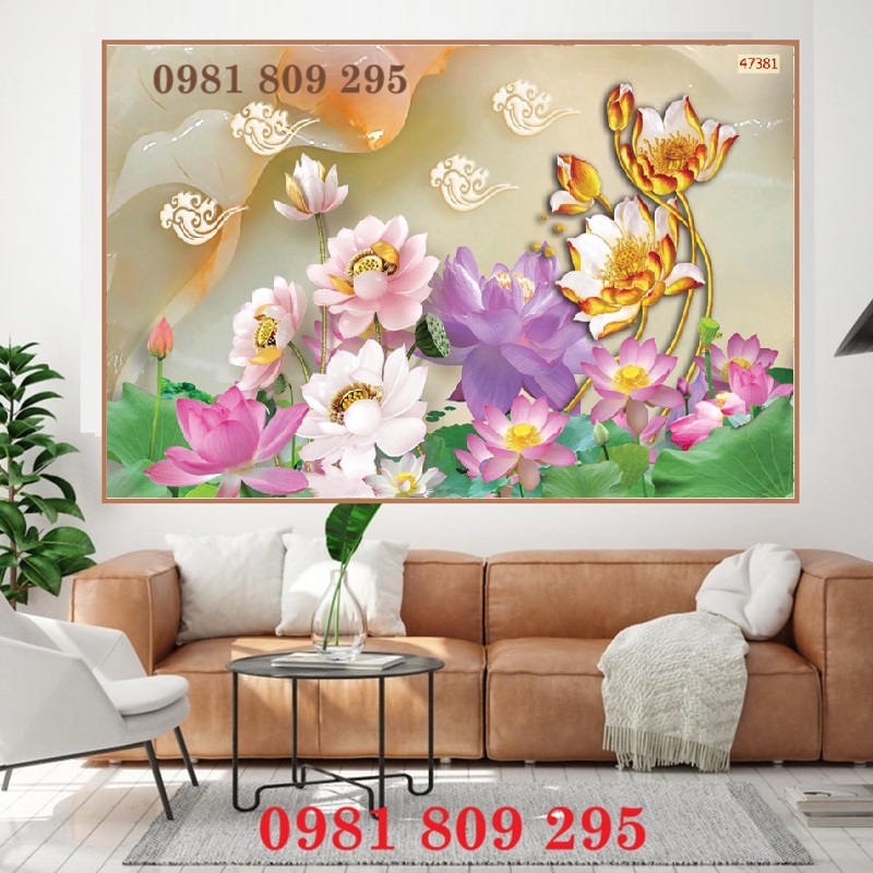 Gạch tranh , tranh 3d hoa sen cao cấp
