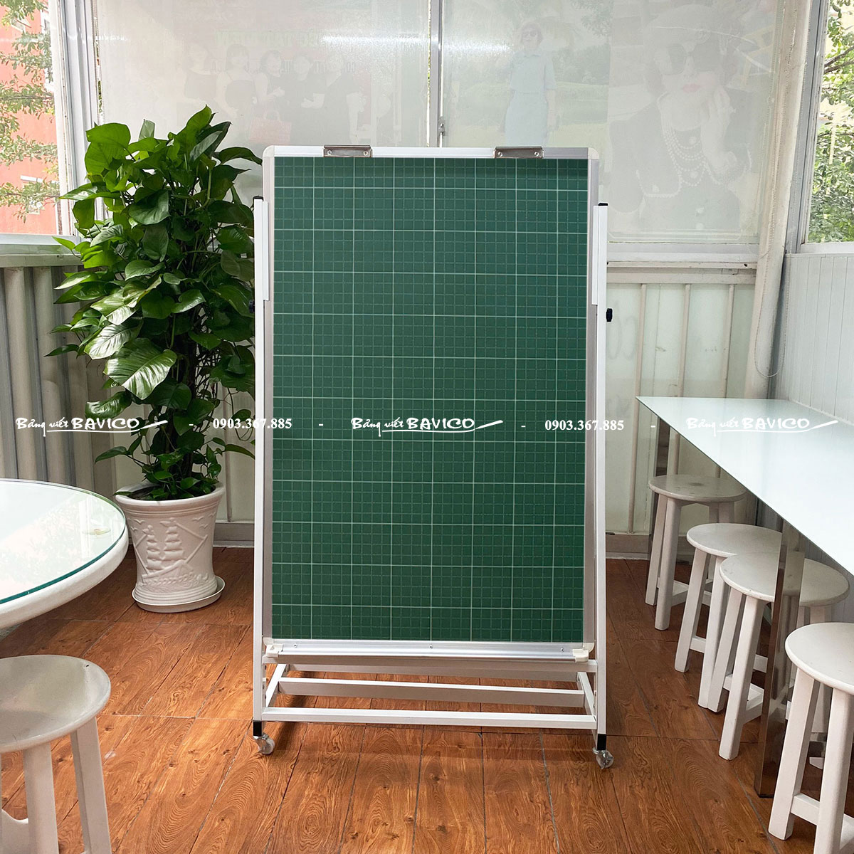 Đây là loại bảng phấn từ tính có mặt bảng màu xanh, chia ô ly rõ ràng, giúp học sinh dễ dàng căn