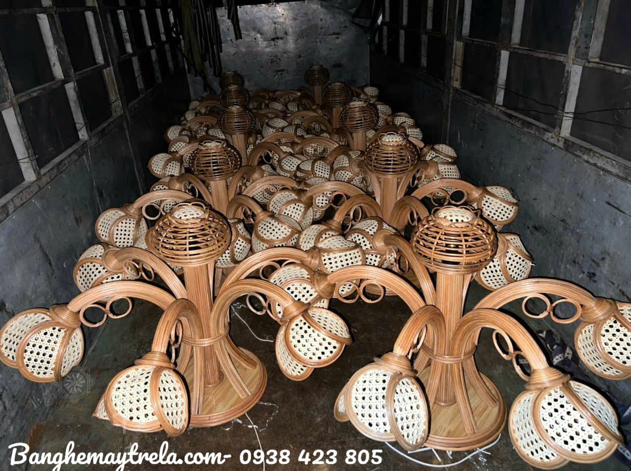 Được làm thủ công từ mây tre tự nhiên, đèn chùm thả trần mang vẻ đẹp mộc mạc nhưng tinh tế.