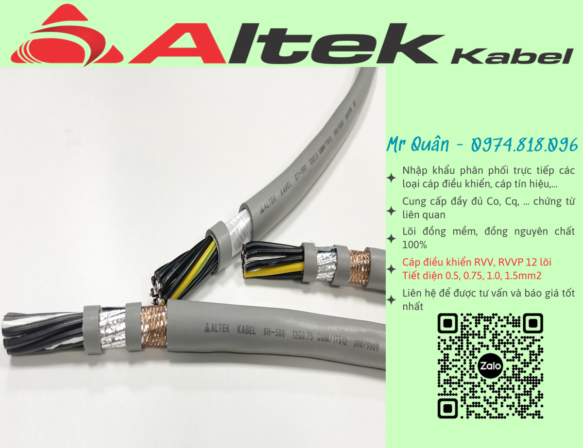 Cáp điều khiển Rvv, Rvvp 12 lõi - Altek Kabel là dòng sản phẩm chất lượng cao, được sử dụng