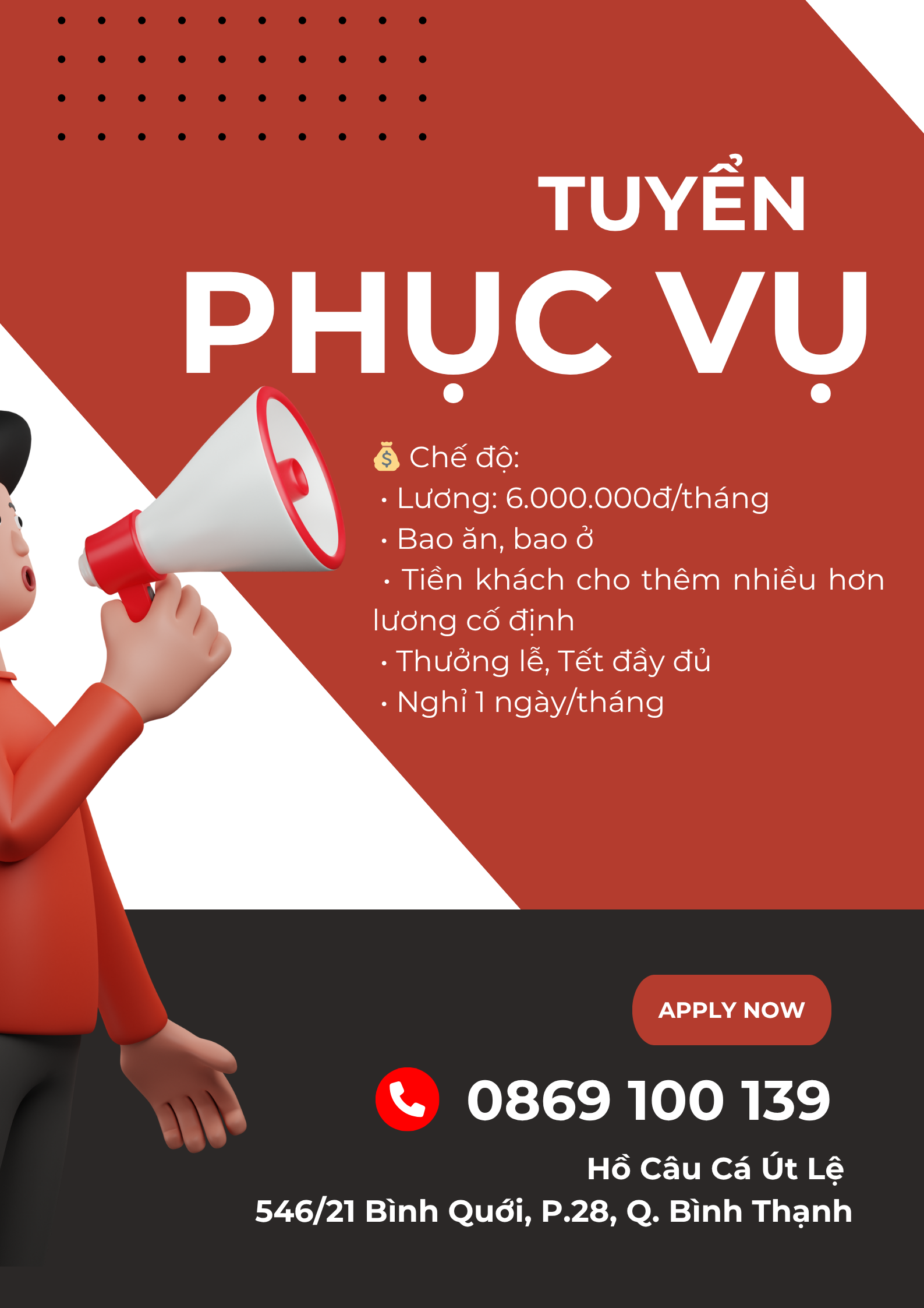 🎣 TUYỂN NHÂN VIÊN PHỤC VỤ KHÁCH ĂN UỐNG TẠI HỒ CÂU CÁ 🎣