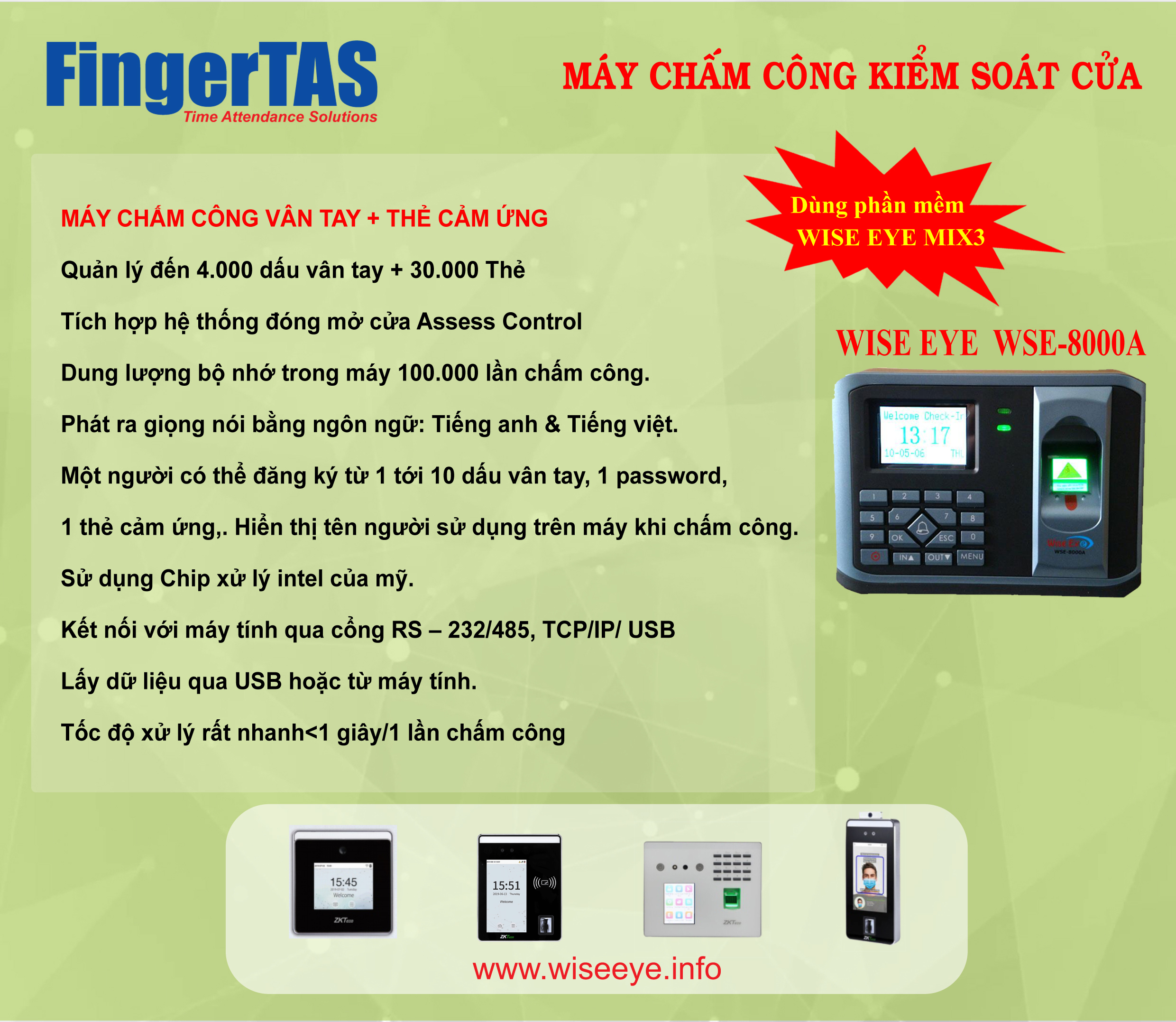 - Quản lý đến 4.000 dấu vân tay / Thẻ cảm ứng .