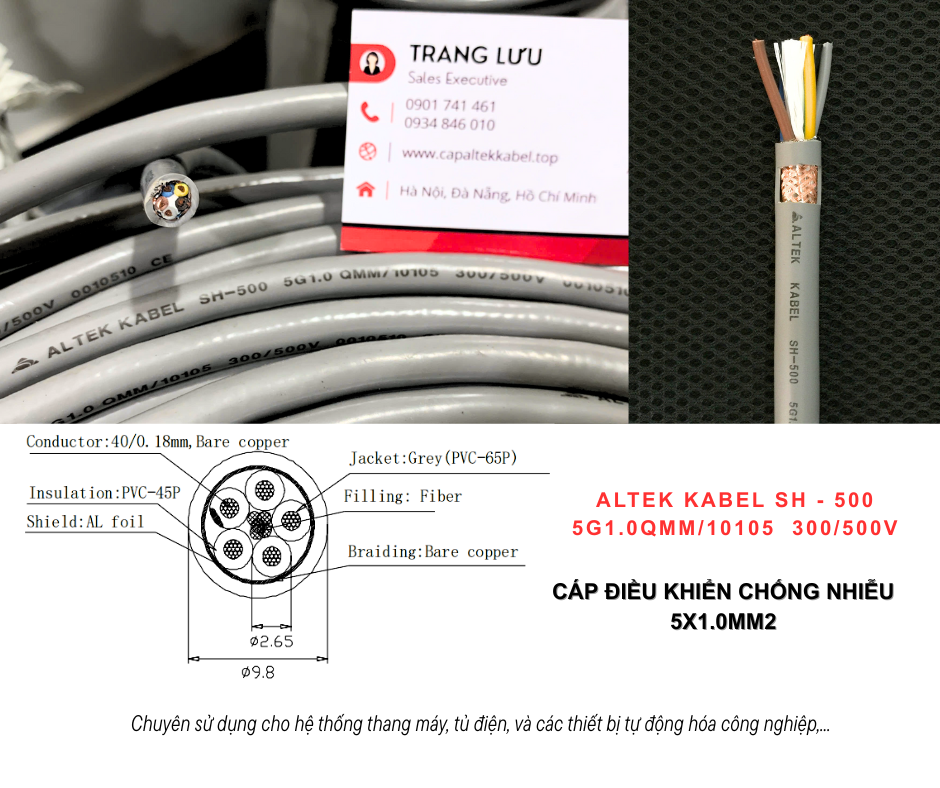 Cáp tín hiệu 5x1.0 chống nhiễu Altek Kabel Đà Nẵng, Huế, Quảng Nam, Bình Định
