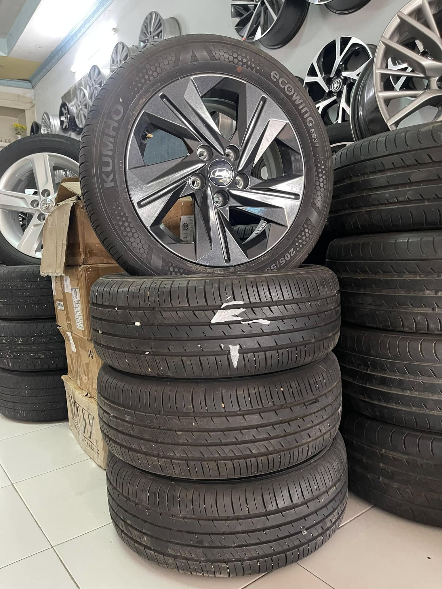 Thanh lý combo mâm lốp zin Elantra bản tiêu chuẩn 16 inch kèm lốp 205/55R16 Kumho date 22 gai