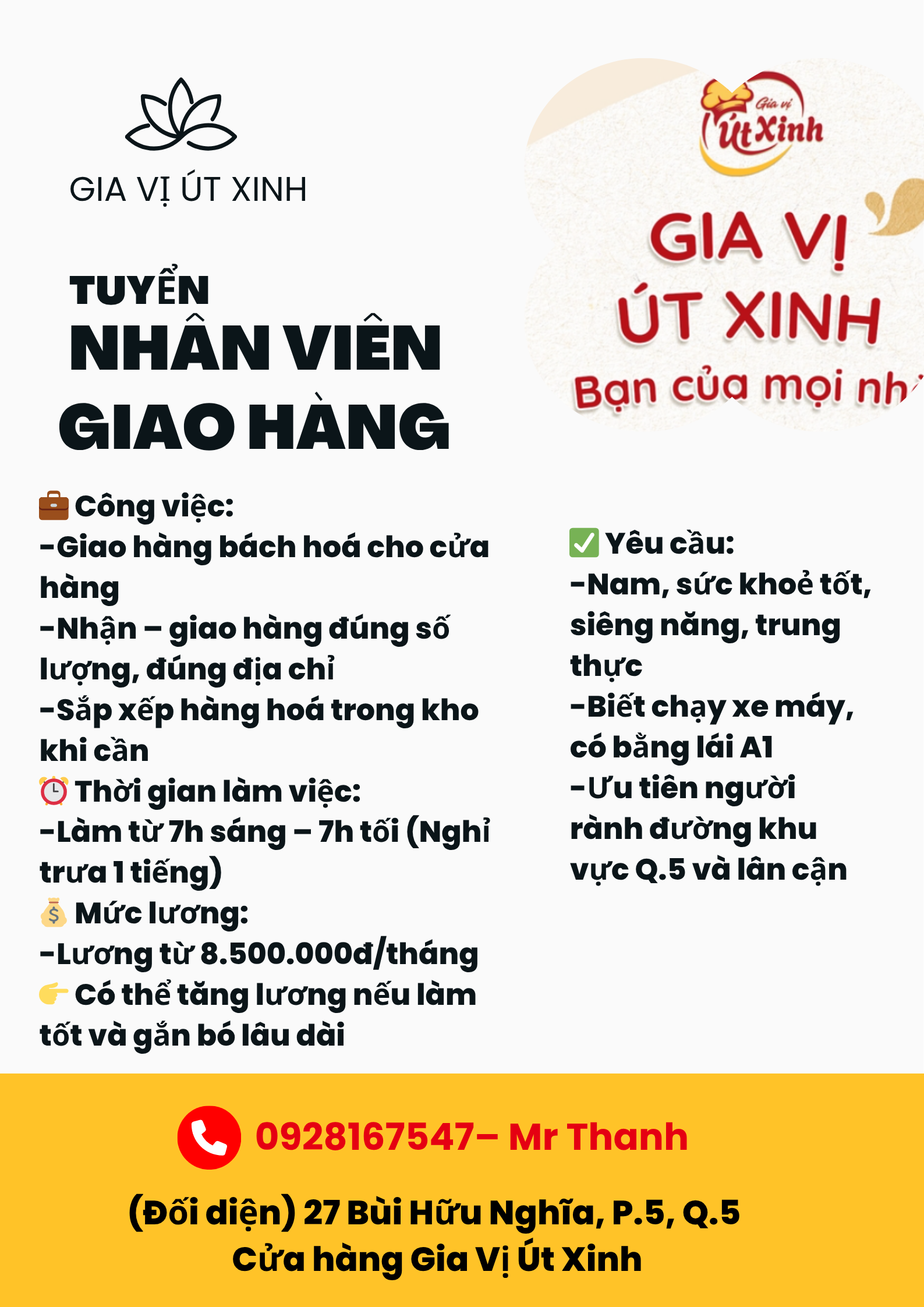 - Ưu tiên người rành đường khu vực Q.5 và lân cận