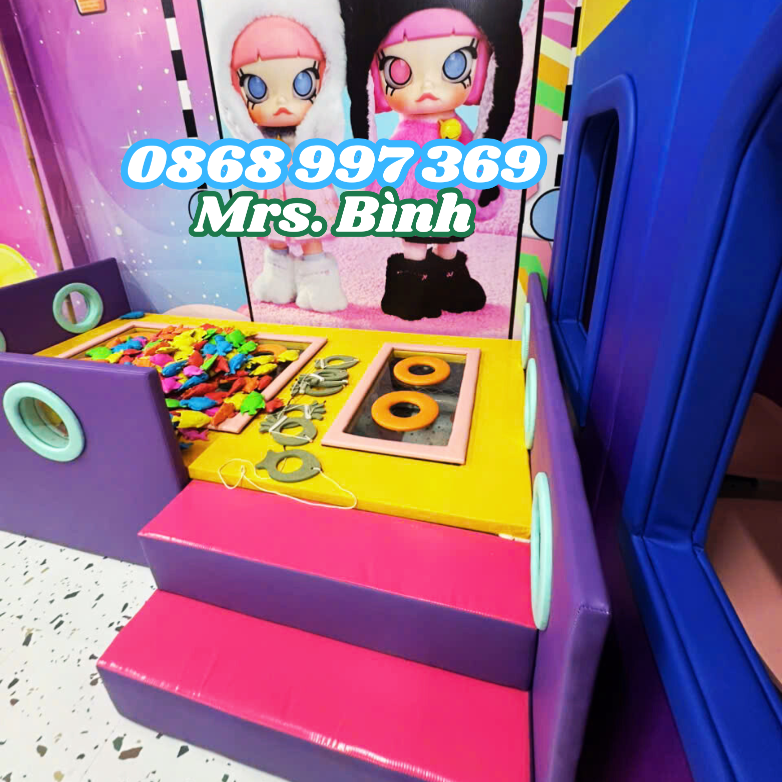 🚨 Được làm bằng hệ thống khung sắt, bề mặt lót mút xốp, 2 bên có bậc nhị cấp cho bé leo lên,..