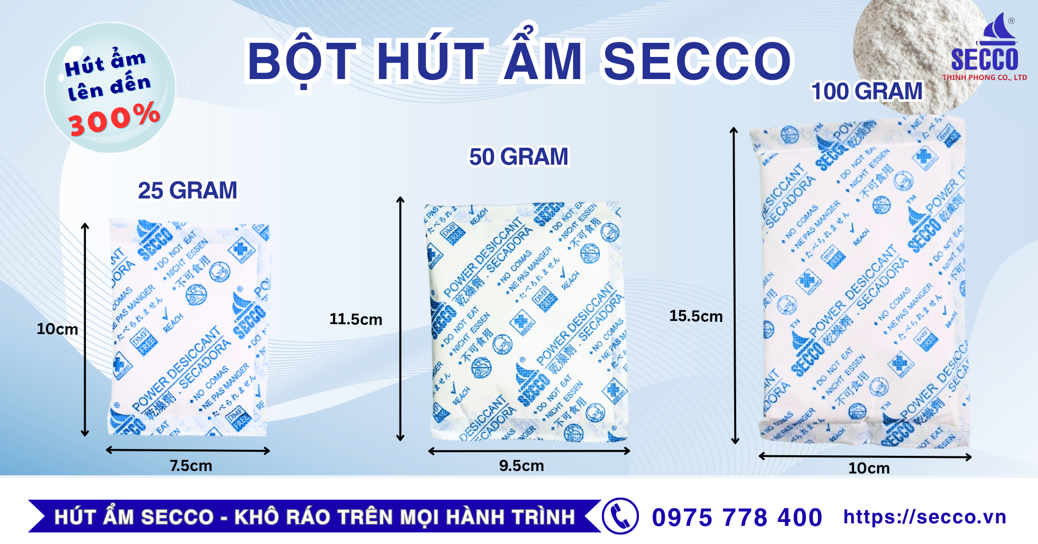 Bột hút ẩm SECCO – khả năng hút ẩm mạnh gấp 8 lần silica gel, giúp kiểm soát độ ẩm hiệu quả