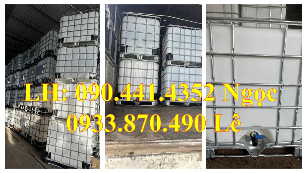 Công ty sx tank nhựa ibc 1000L + khung thép có màu trắng nhựa HDPE CHÍNH PHẨM