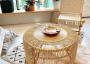Được làm thủ công từ sợi mây tự nhiên bền đẹp, mỗi chiếc bàn đều có họa tiết đan tinh xảo,