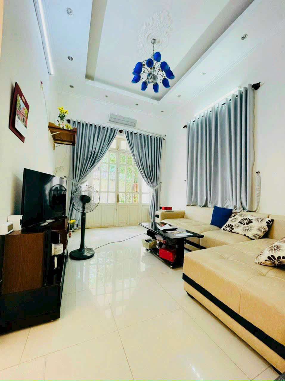 D. Tích : 182m . Ngang 8.5m . Trong đó có 150m đất ở . Nhà đẹp ngay Trung Tâm