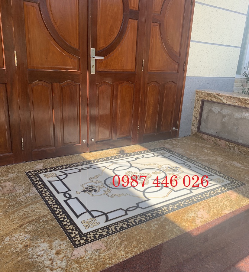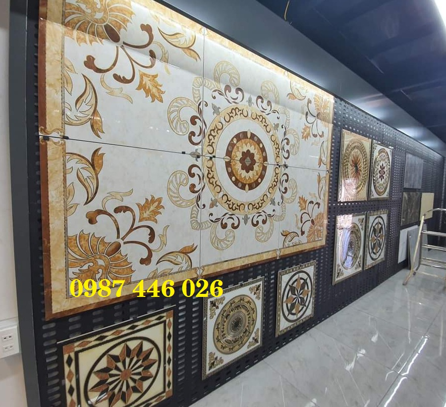 - Chất liệu: Gạch granite mặt men vi tinh khắc vàng