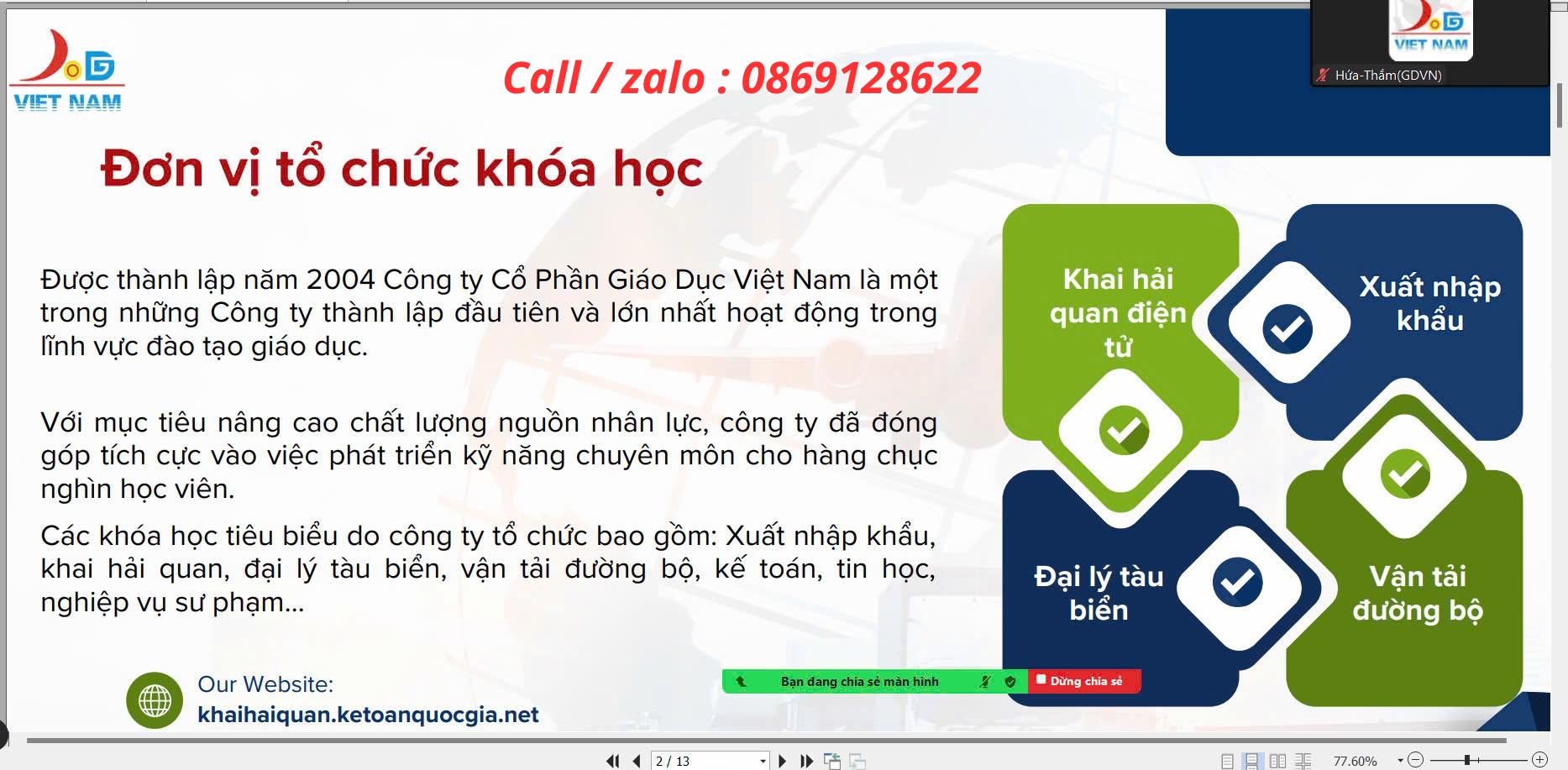 Hotline: Phòng đào tạo0869128622 (Đoan)