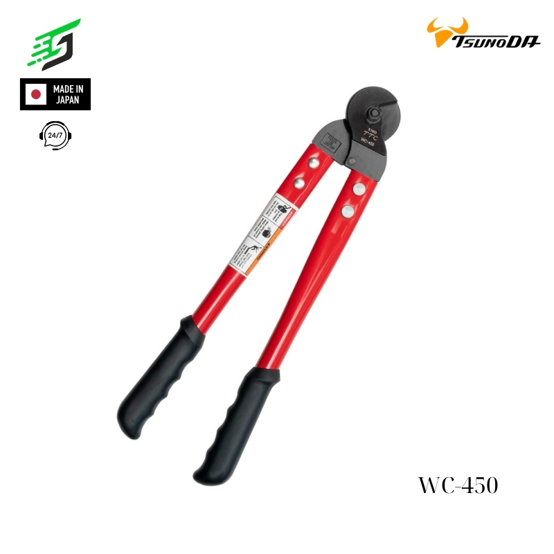 Cây kìm cắt cáp xoắn Tsunoda WC-450 với chiều dài tổng ~430 mm, thiết kế chuyên dụng để xử