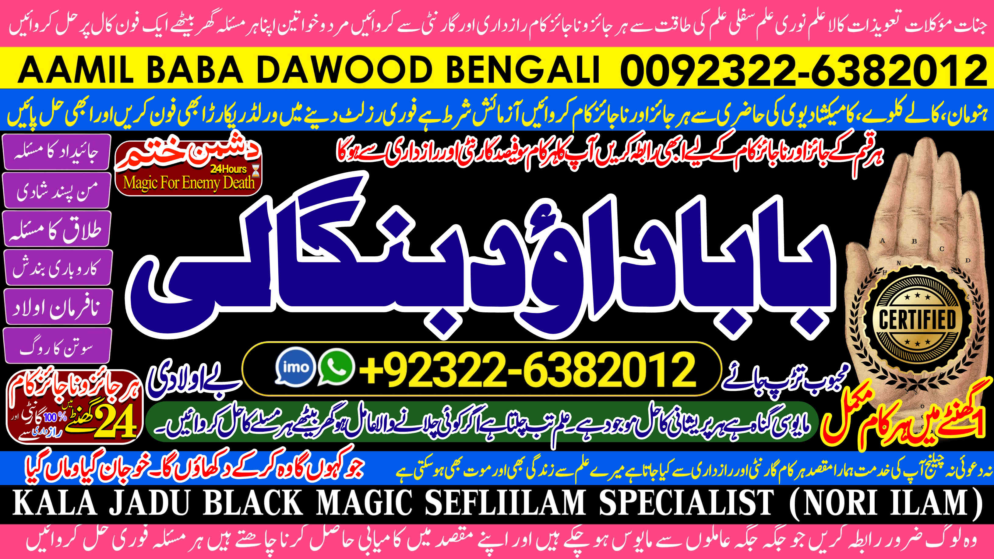 Amil Baba Dawood Bangali { PAK: 0322-6382012 ---- UAN: 0092-322-6382012} is a renowned