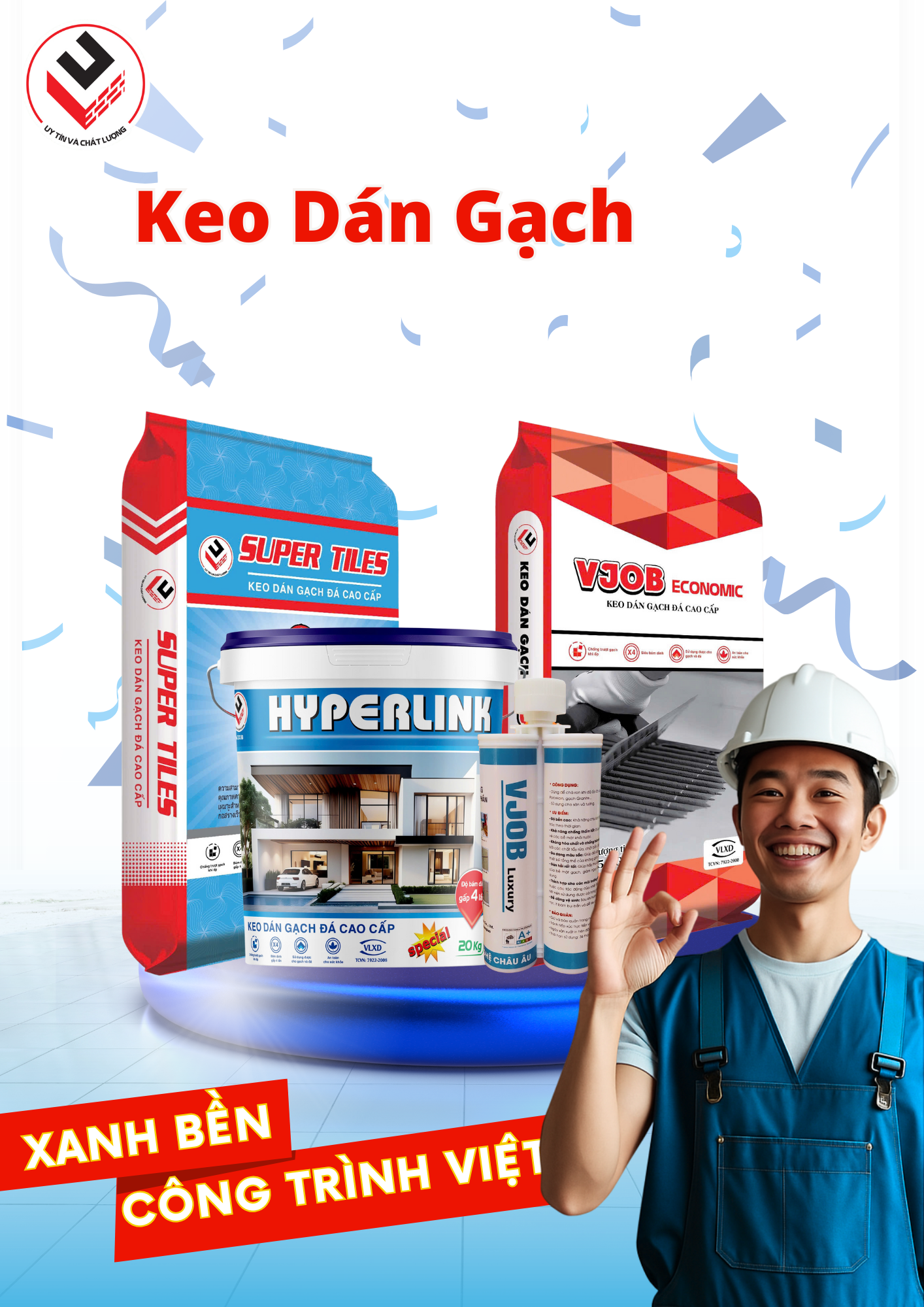 𝐕𝐉𝐎𝐁 mang đến 3 dòng keo dán gạch chất lượng cao, phù hợp mọi nhu cầu thi công: