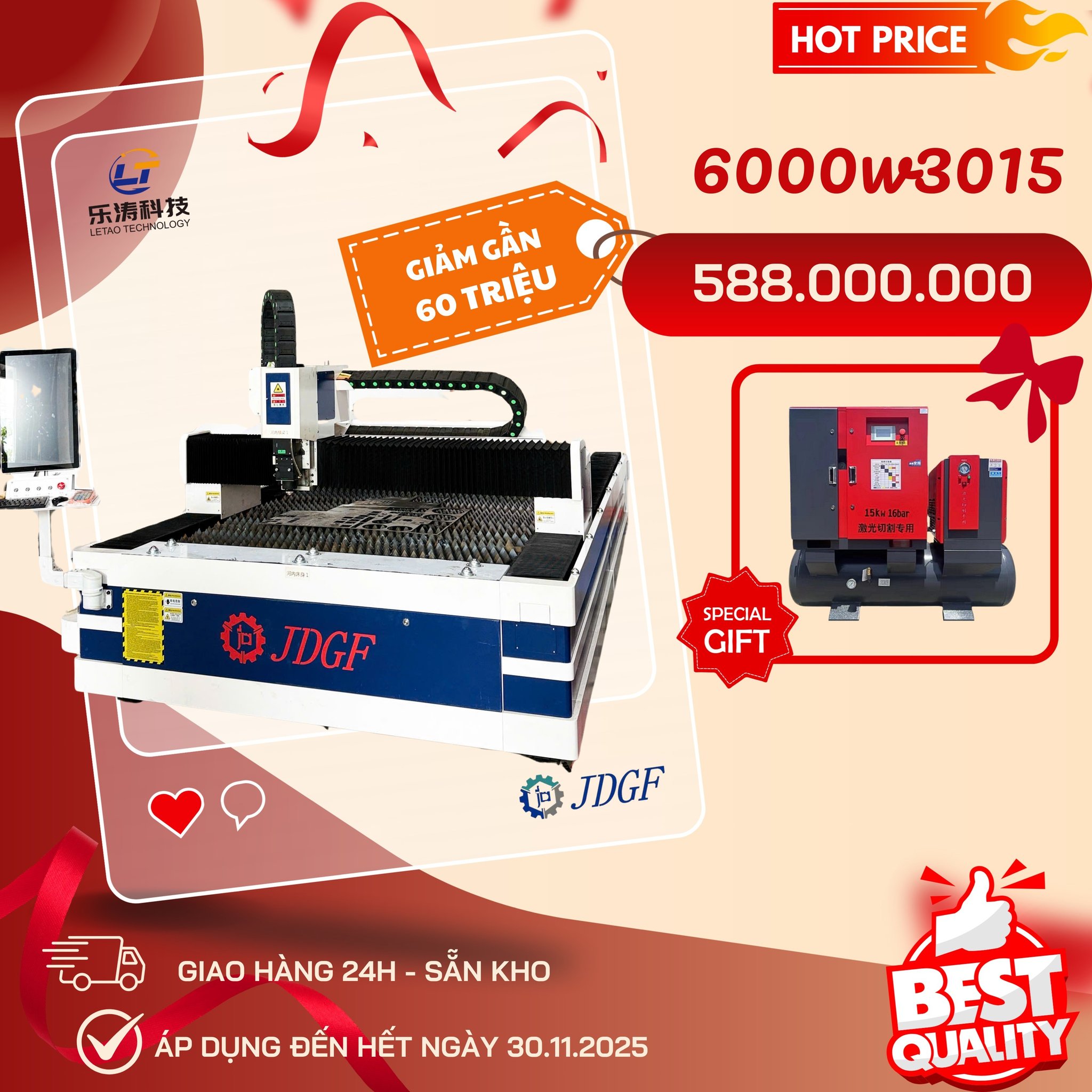 Combo Laser 3015–6000W + Máy nén khí 22kW – chỉ 5xx triệu (đã VAT)