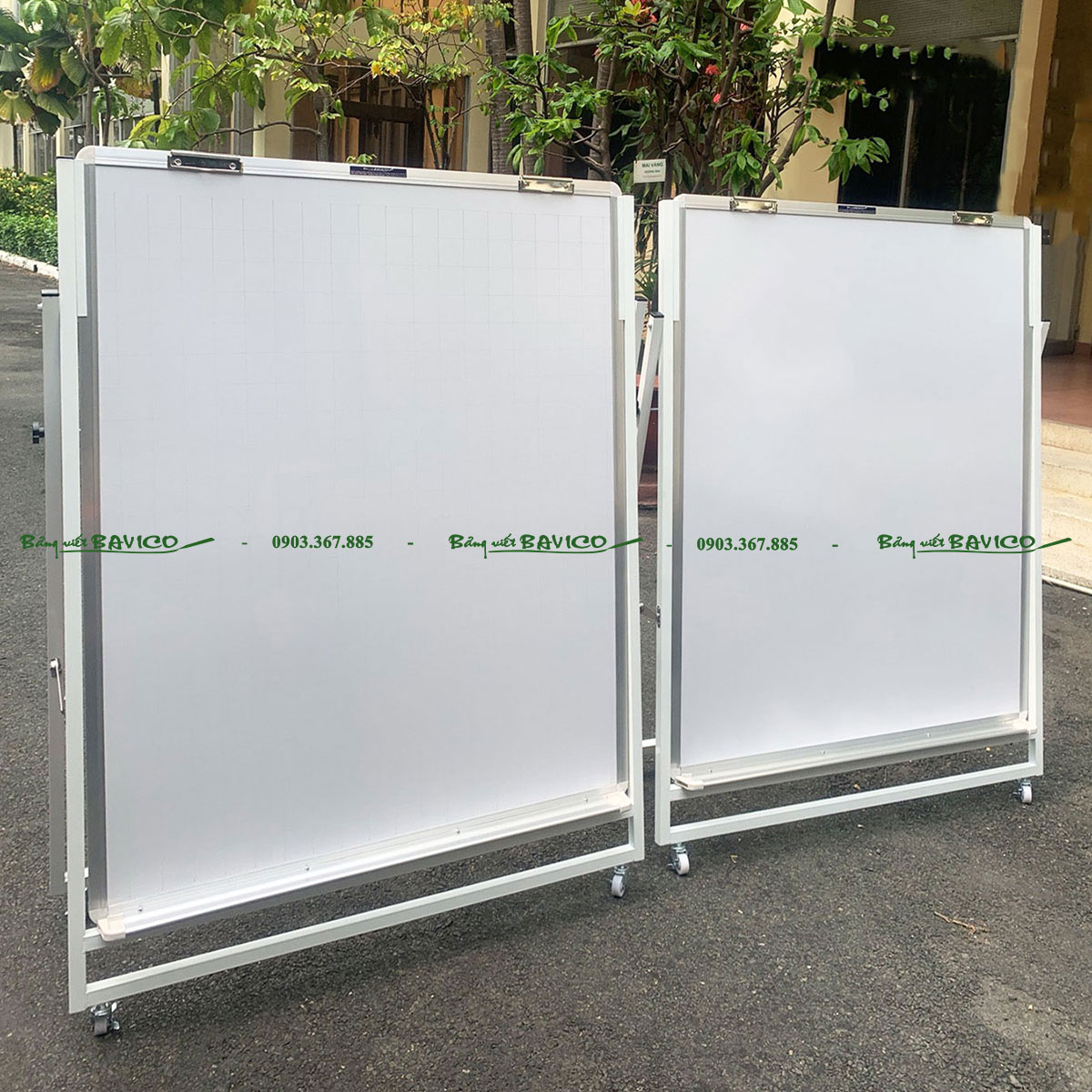 Chân bảng được thiết kế dạng chữ U có bánh xe, giúp người dùng di chuyển bảng dễ dàng giữa