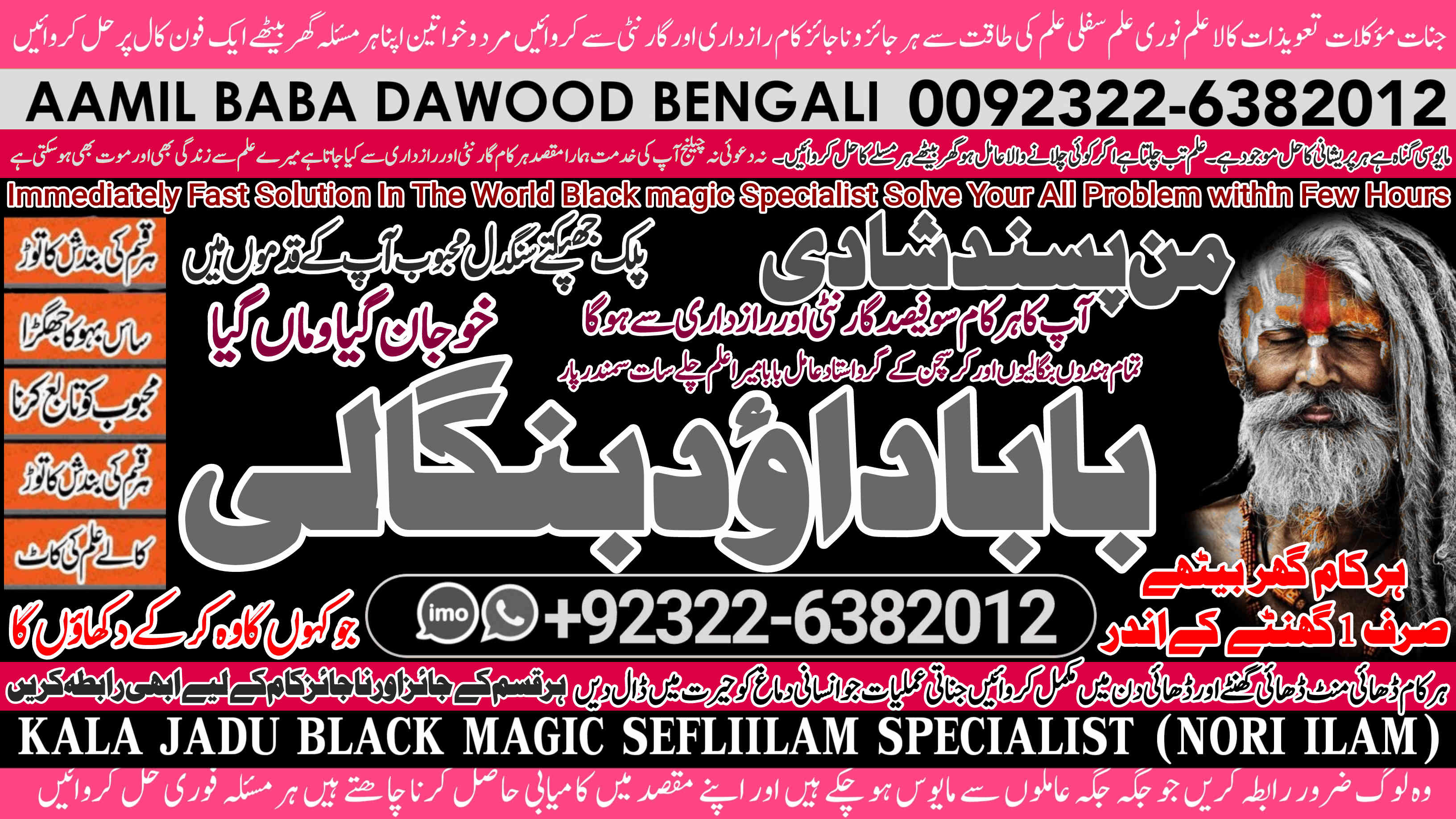 Amil Baba Dawood Bangali { PAK: 0322-6382012 ---- UAN: 0092-322-6382012} is a renowned