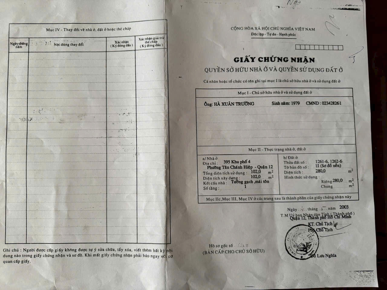 Thổ cư: 280m² chuẩn chỉnh