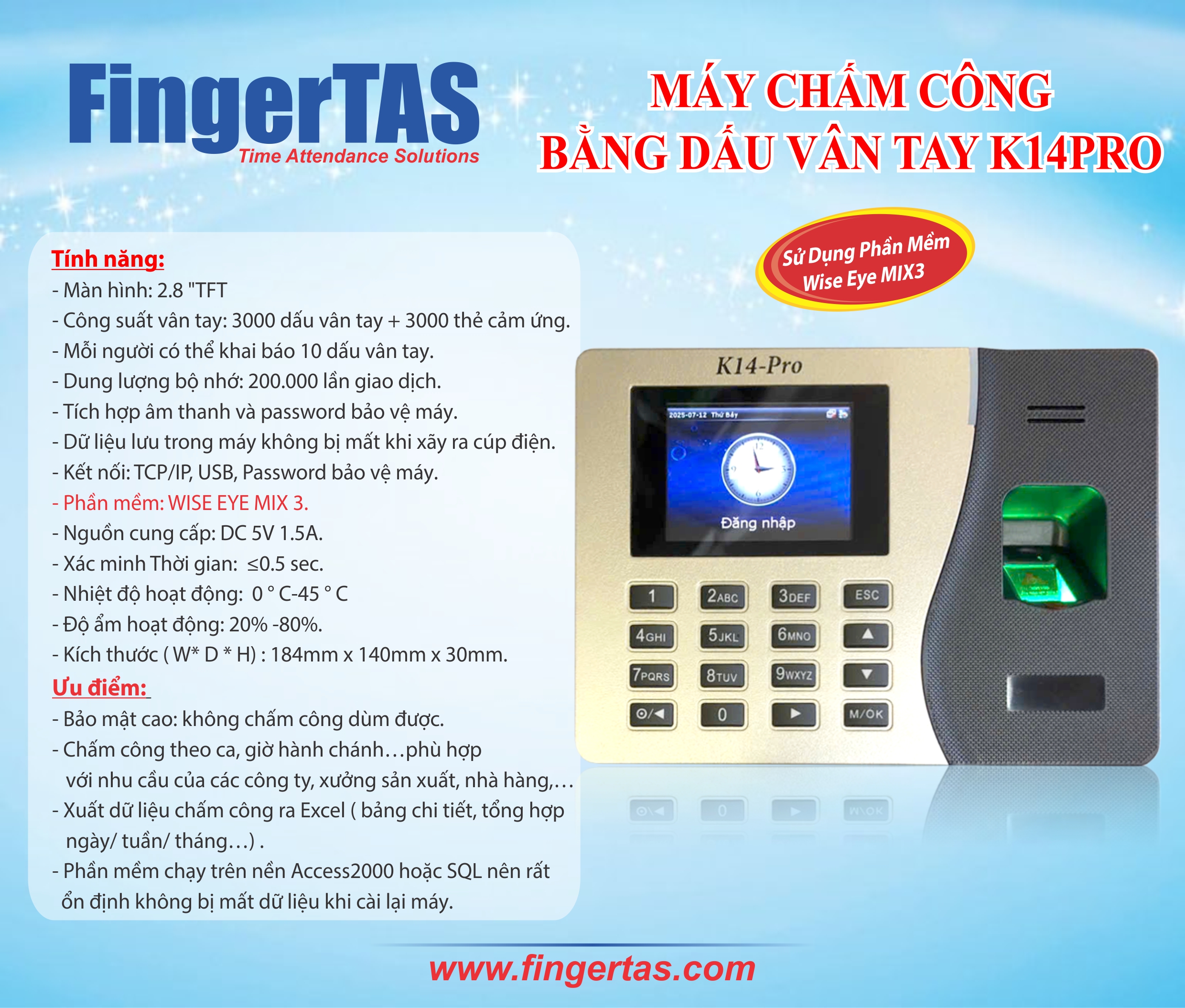 Đặc biệt với phầm mềm chấm công tiếng Việt Wise Eye Mix3