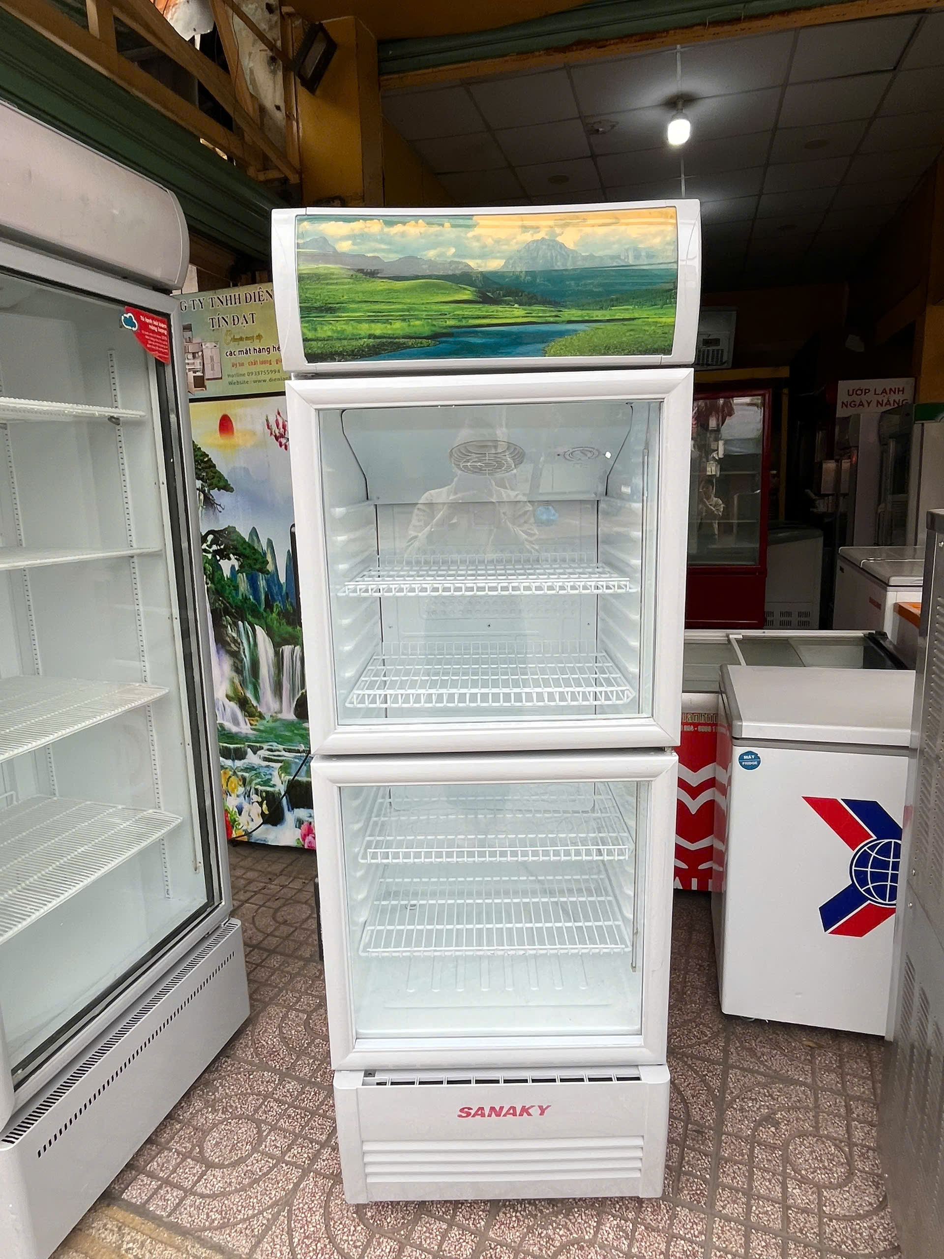 Tủ mát thương hiệu Sanaky, phù hợp trưng bày nước giải khát, sữa, thực phẩm mát cho tiệm tạp
