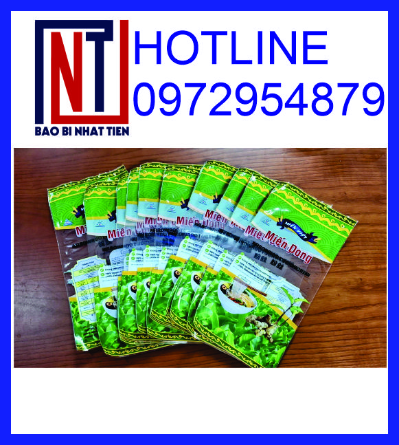 Cấu trúc bao bì đóng gói miến khô là: OPP/CPP, OPP/PE, PET/PE.