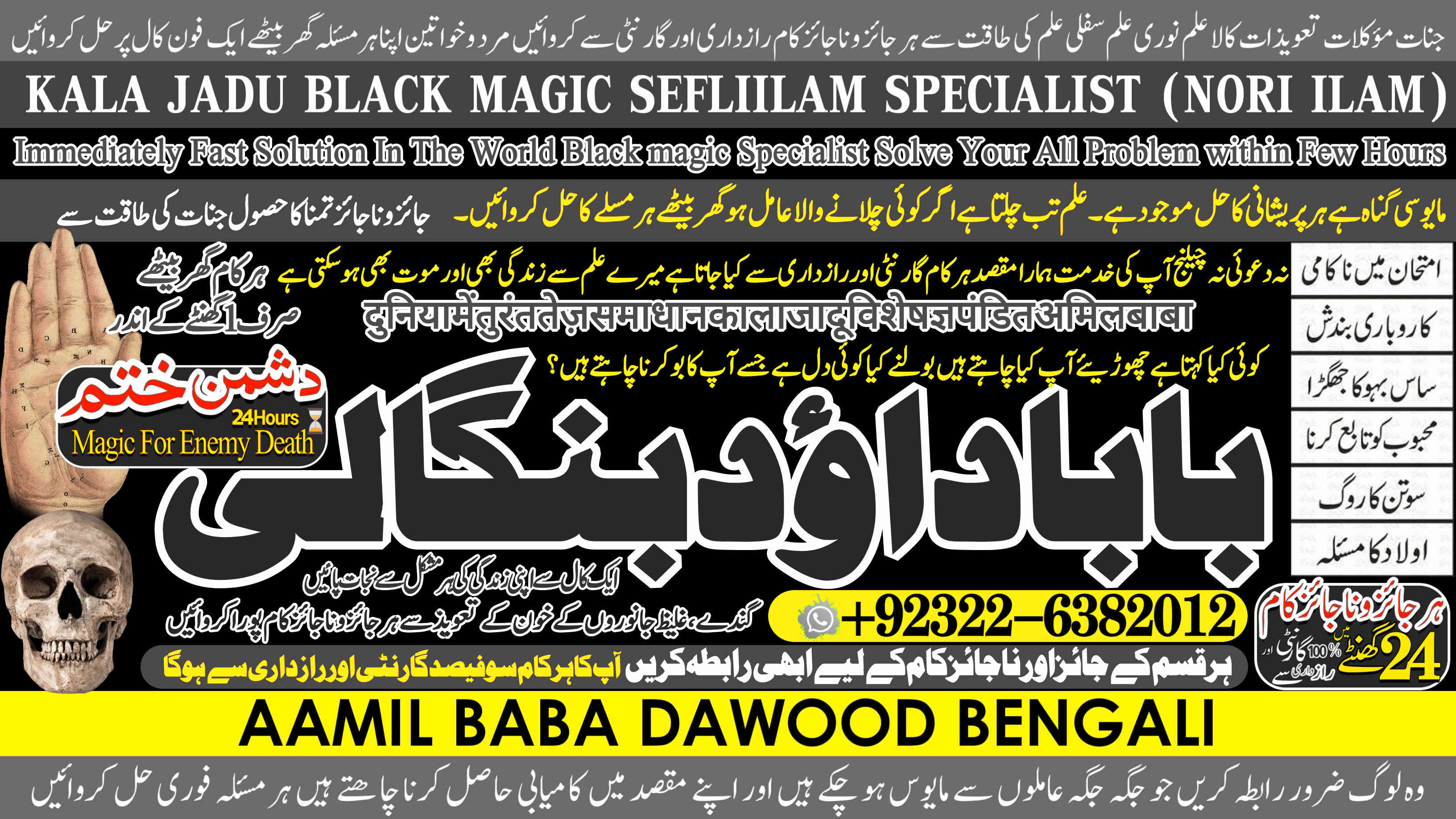 Amil Baba Dawood Bangali { PAK: 0322-6382012 ---- UAN: 0092-322-6382012} is a renowned