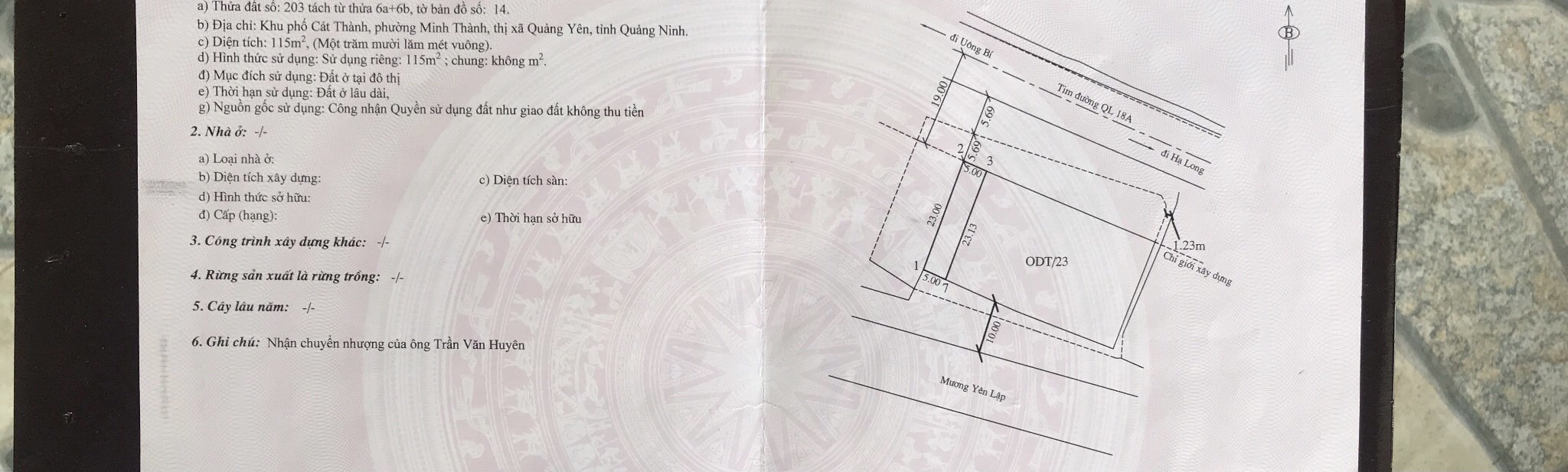 cần bán lô đất mặt quốc lộ 18A cũ, đường đi hạ long,diện tích 115m2 full xây dựng,
