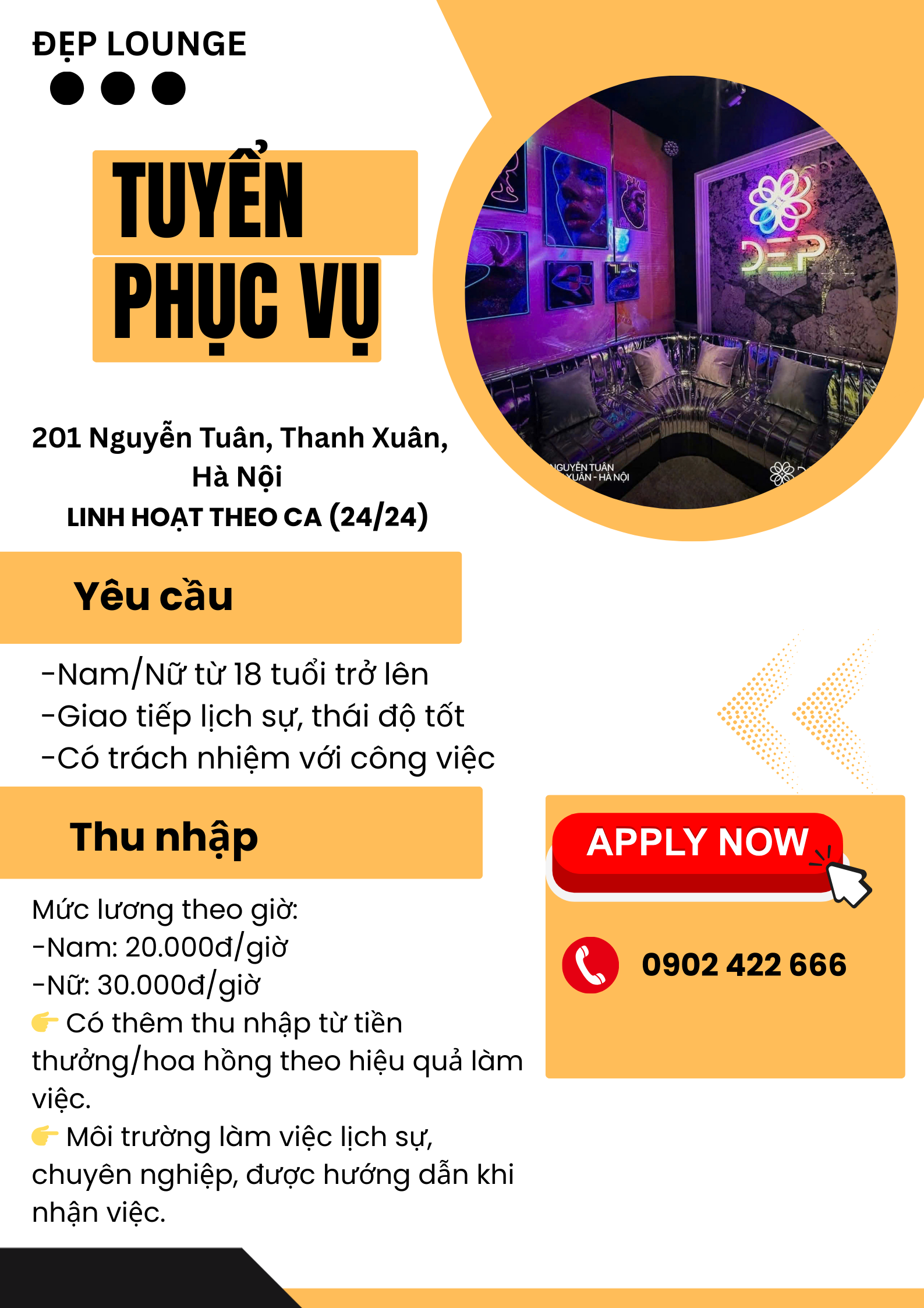 TUYỂN NHÂN VIÊN PHỤC VỤ – ĐẸP LOUNGE