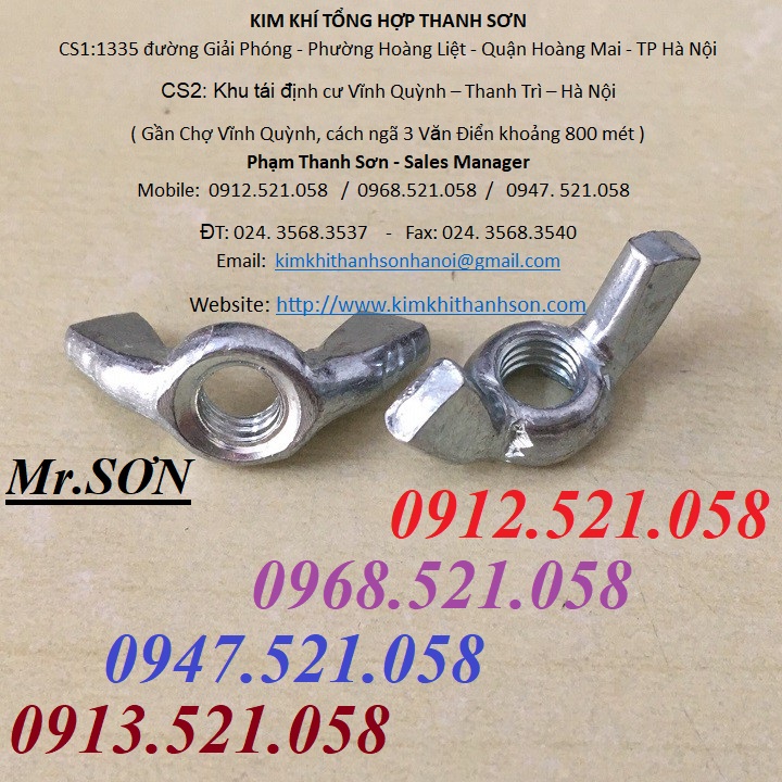 Ê cu tai hồng M12,10,8,6,5,4 mạ kẽm 0913521058 Kim khí THANH SƠN có đai ốc tai hòng Inox