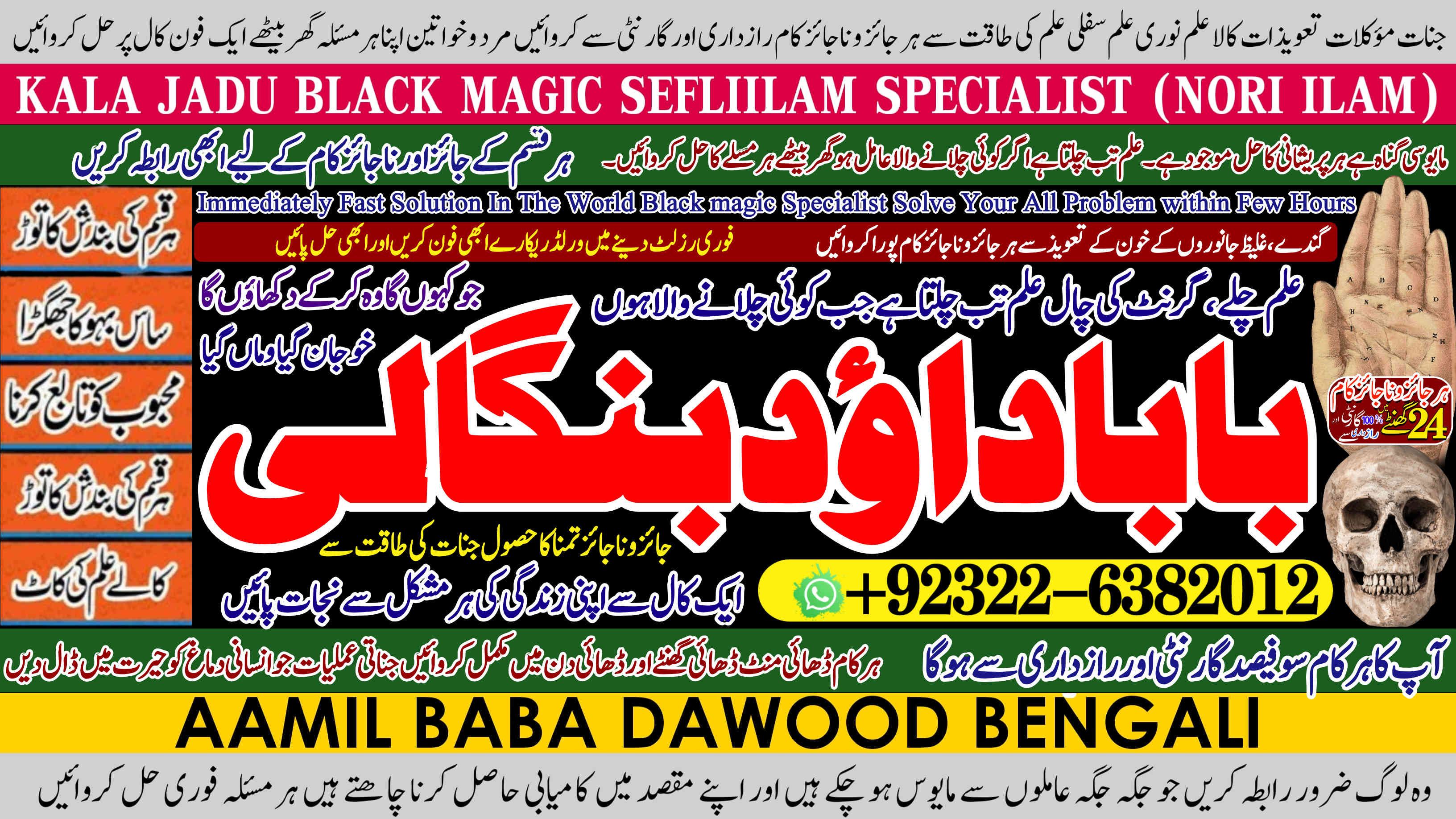 Amil Baba Dawood Bangali { PAK: 0322-6382012 ---- UAN: 0092-322-6382012} is a renowned