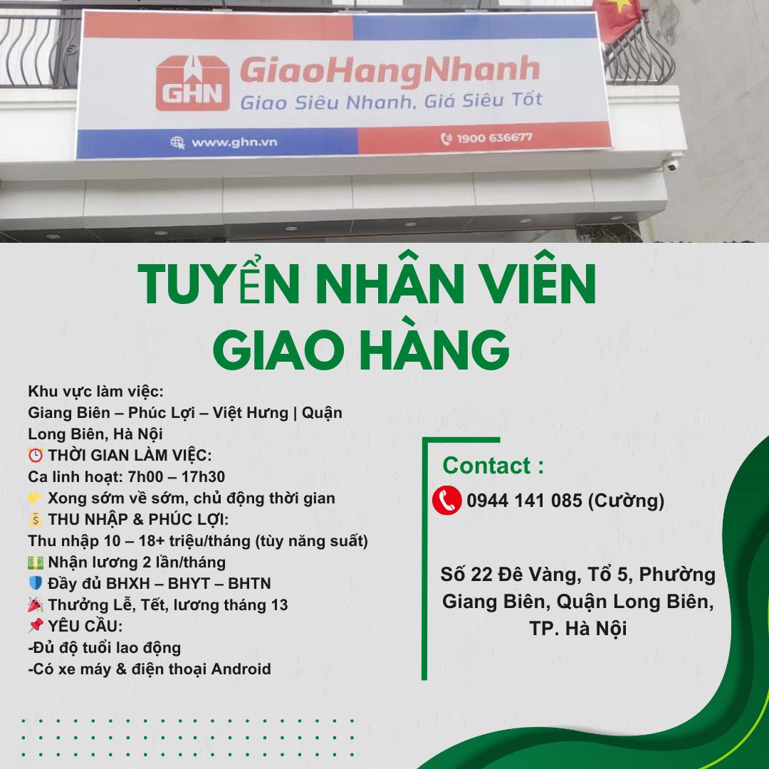 #GHN #TuyểnShipper #ViệcLàmLongBiên #GiaoHàngGHN #ThuNhậpCao #ViệcLàmHàNội