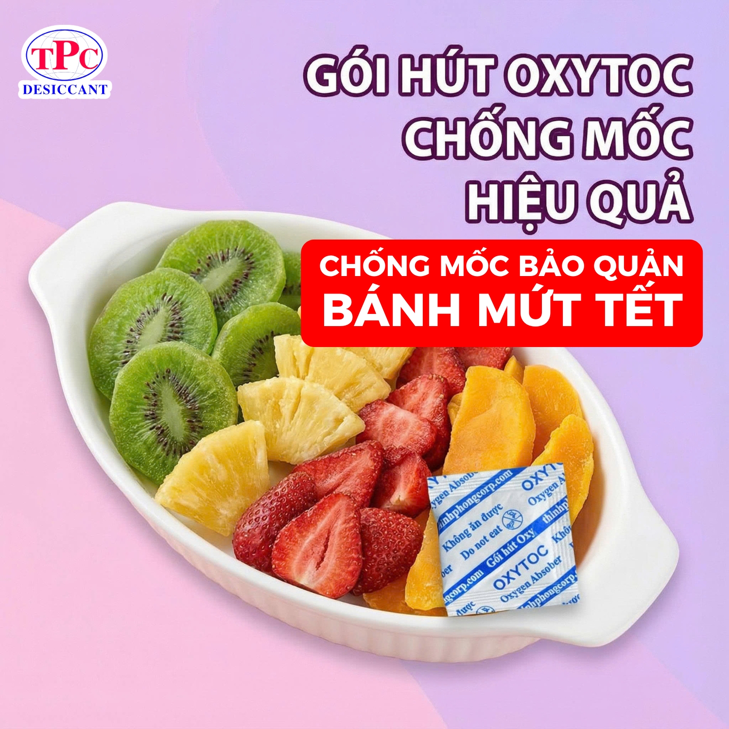 Gói hút oxy OXYTOC giúp xử lý lượng oxy dư còn sót trong bao bì, nguyên nhân khiến thực phẩm