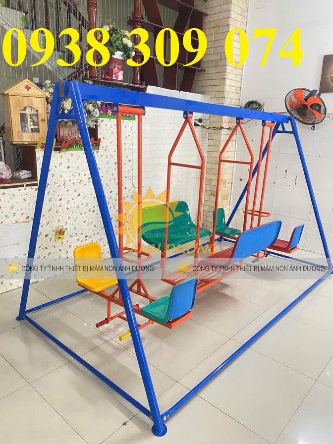 Xích đu thuyền rồng mầm non, xích đu 3 dạng 8 chỗ ngồi