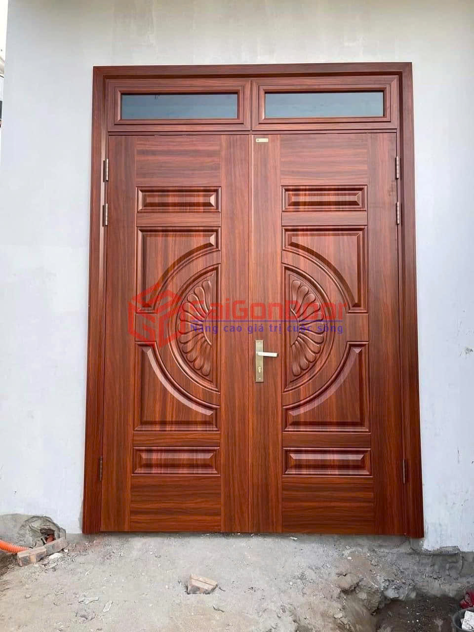 👉Cửa thép vân gỗ 2 cánh kết hợp độ bền của thép và vẻ đẹp vân gỗ tự nhiên, giúp không gian