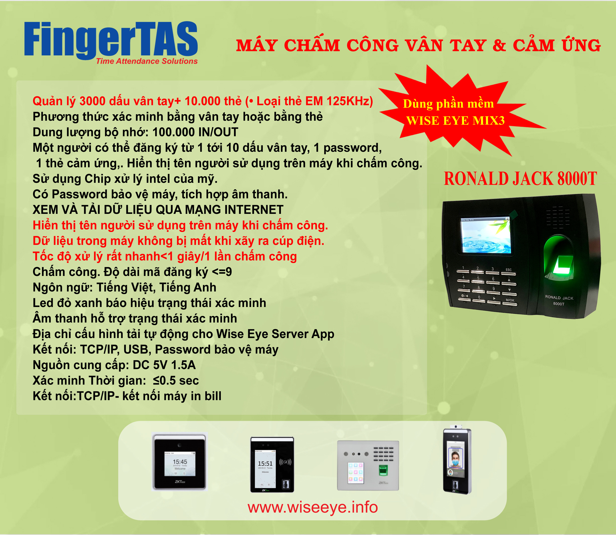 "MÁY CHẤM CÔNG BẰNG DẤU VÂN TAY 8000T