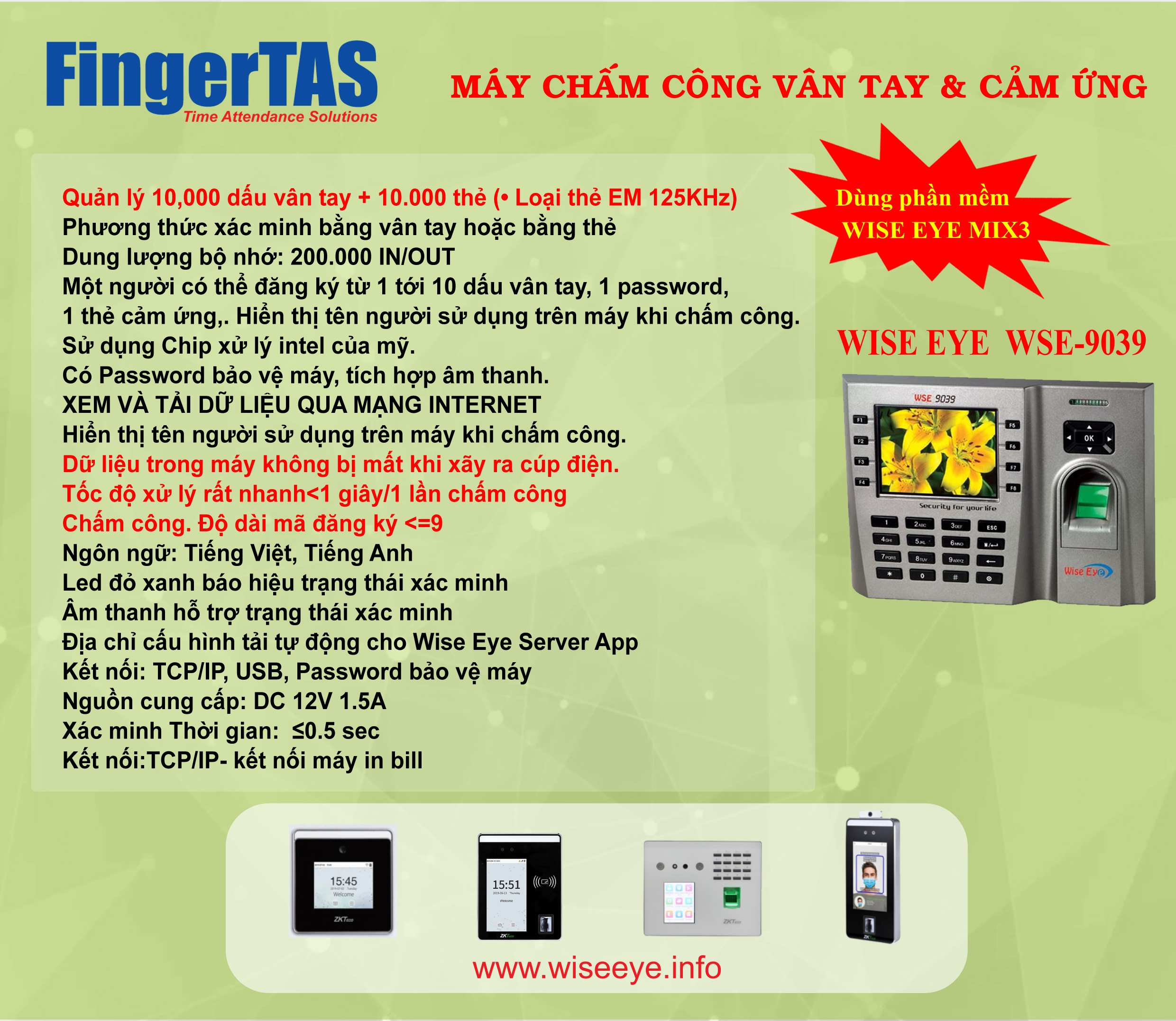 MÁY CHẤM CÔNG BẰNG DẤU VÂN TAY WSE-9039