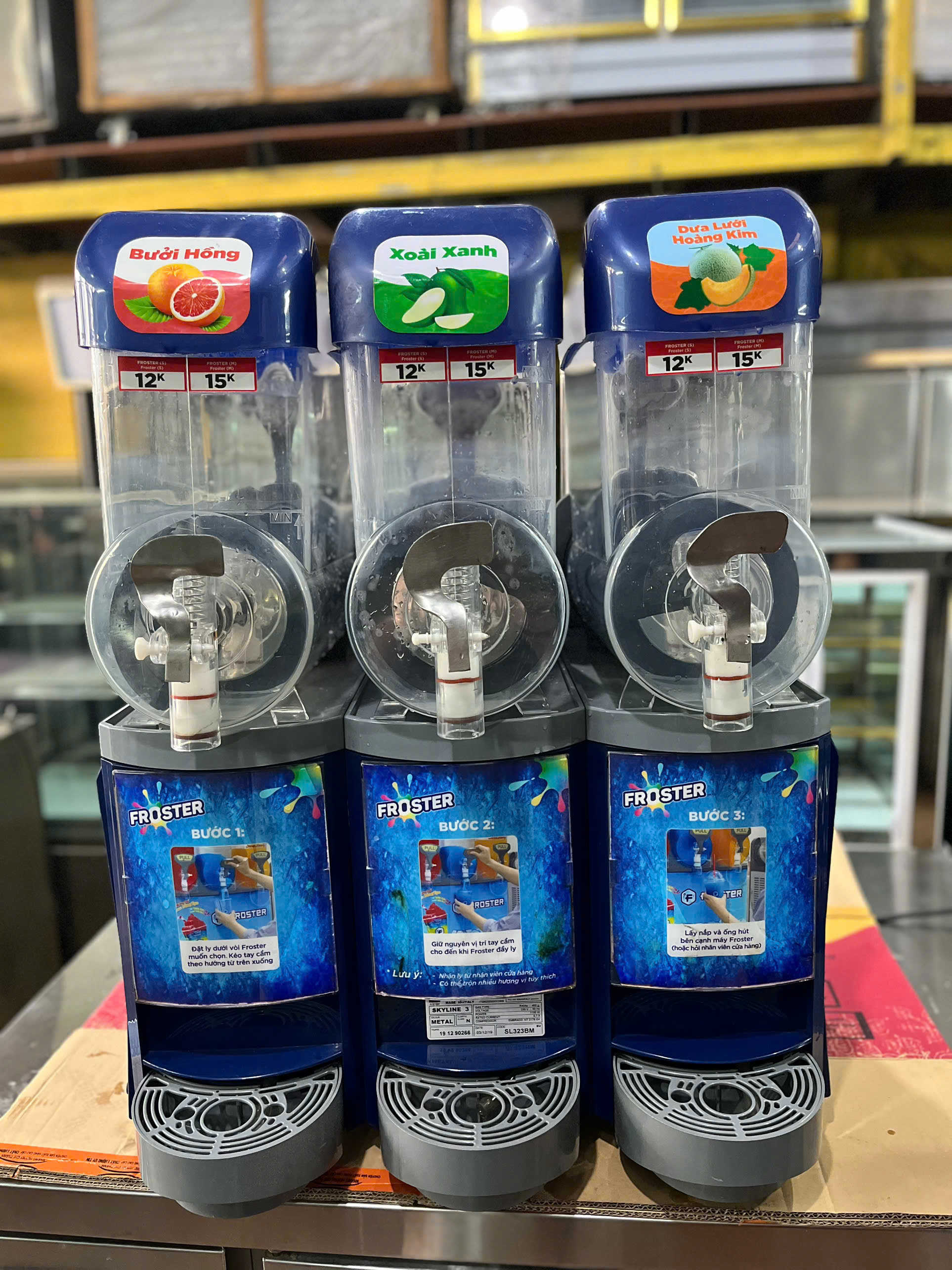 THANH LÝ MÁY LÀM LẠNH NƯỚC-KEM TUYẾT – SLUSHY – FROSTER SKYLINE 3 (3 NGĂN)-