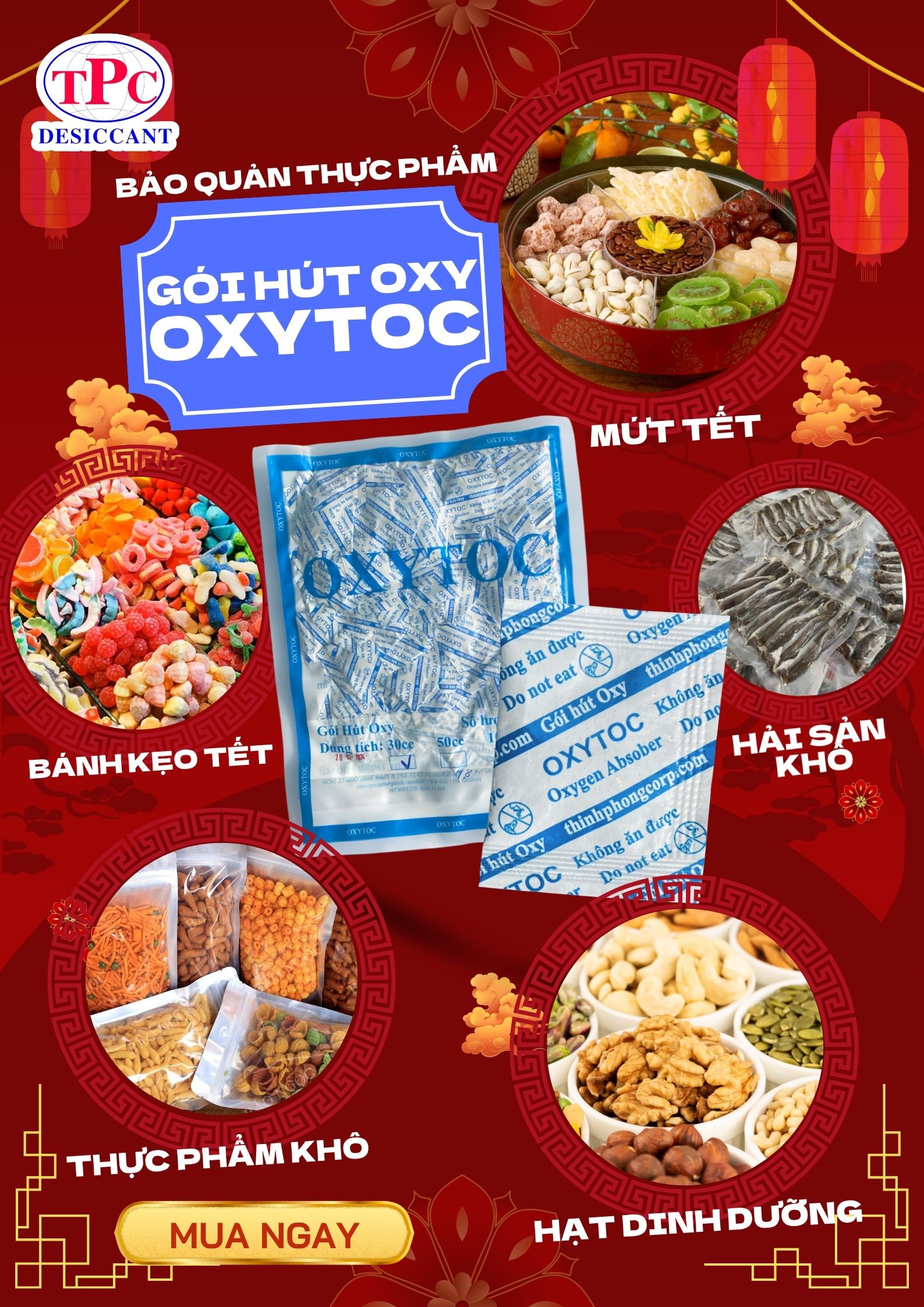 OXYTOC là gói hút oxy giúp giảm oxy dư trong bao bì, nguyên nhân chính gây mốc, hôi dầu và oxy