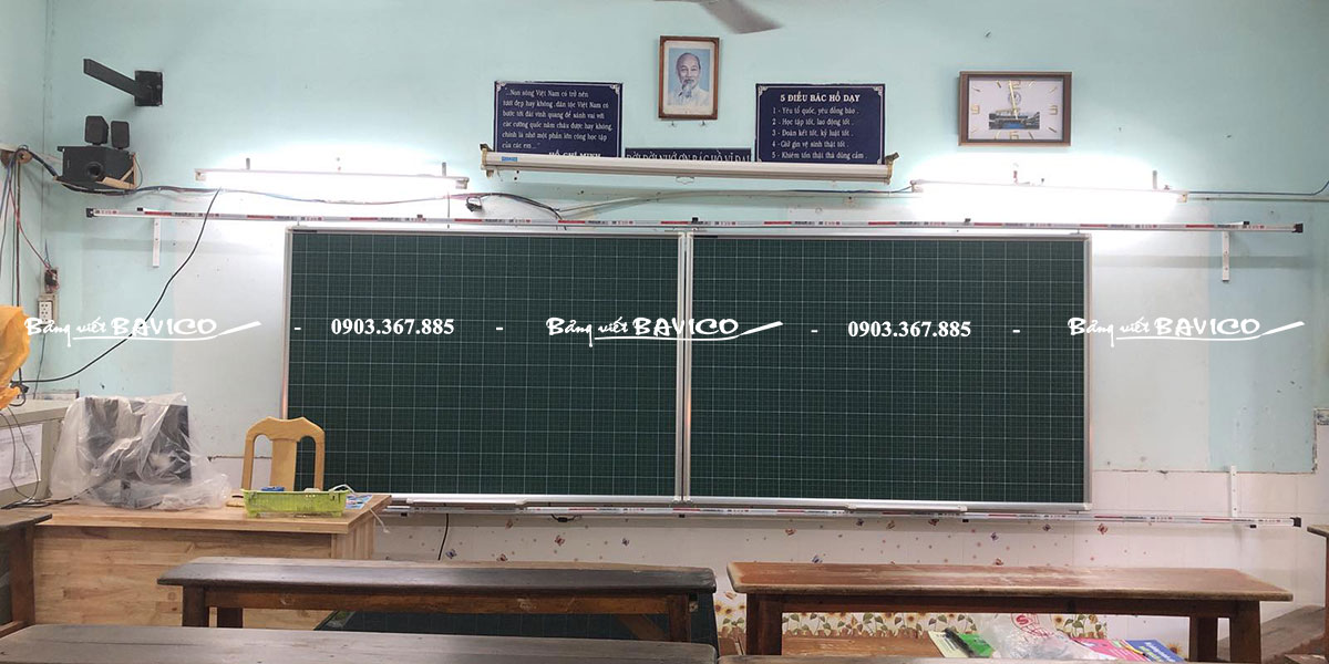 Hệ thống ray trượt linh hoạt giúp dễ dàng di chuyển bảng theo chiều ngang mà không tốn nhiều