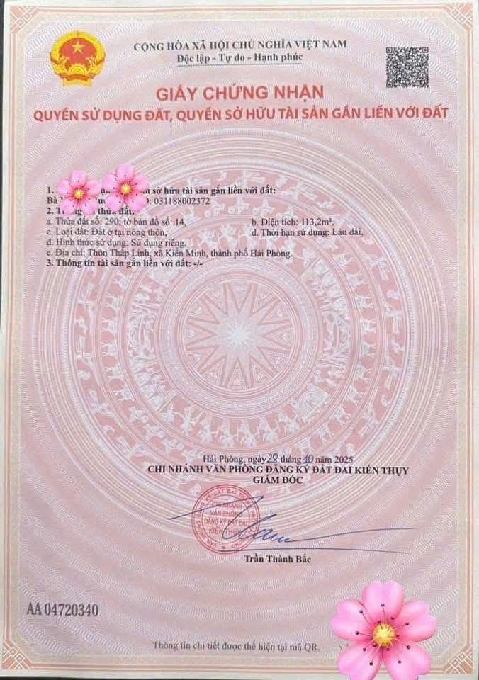 -Diện tích: 113,2m²-Mặt tiền: 5m, hình thửa vuông vắn-Đường trước đất: đường 362 hiện trạng rộng khoảng 30m-Vị ... trí: Minh Tân, Kiến Thụy, Hải Phòng-Trục giao thông chính kết nối khu dân cư, lưu lượng qua lại lớn-Xung quanh nhiều cửa hàng, nhà ở, tiện ích hiện hữu-Phù hợp kinh doanh, mở cửa hàng, văn phòng hoặc nhà đầu tư giữ tài sản dài hạn-Cơ hội đầu tư: mặt đường lớn khu vực Minh Tân được nhiều nhà đầu tư quan tâm khi hạ tầng ngày càng hoàn thiện