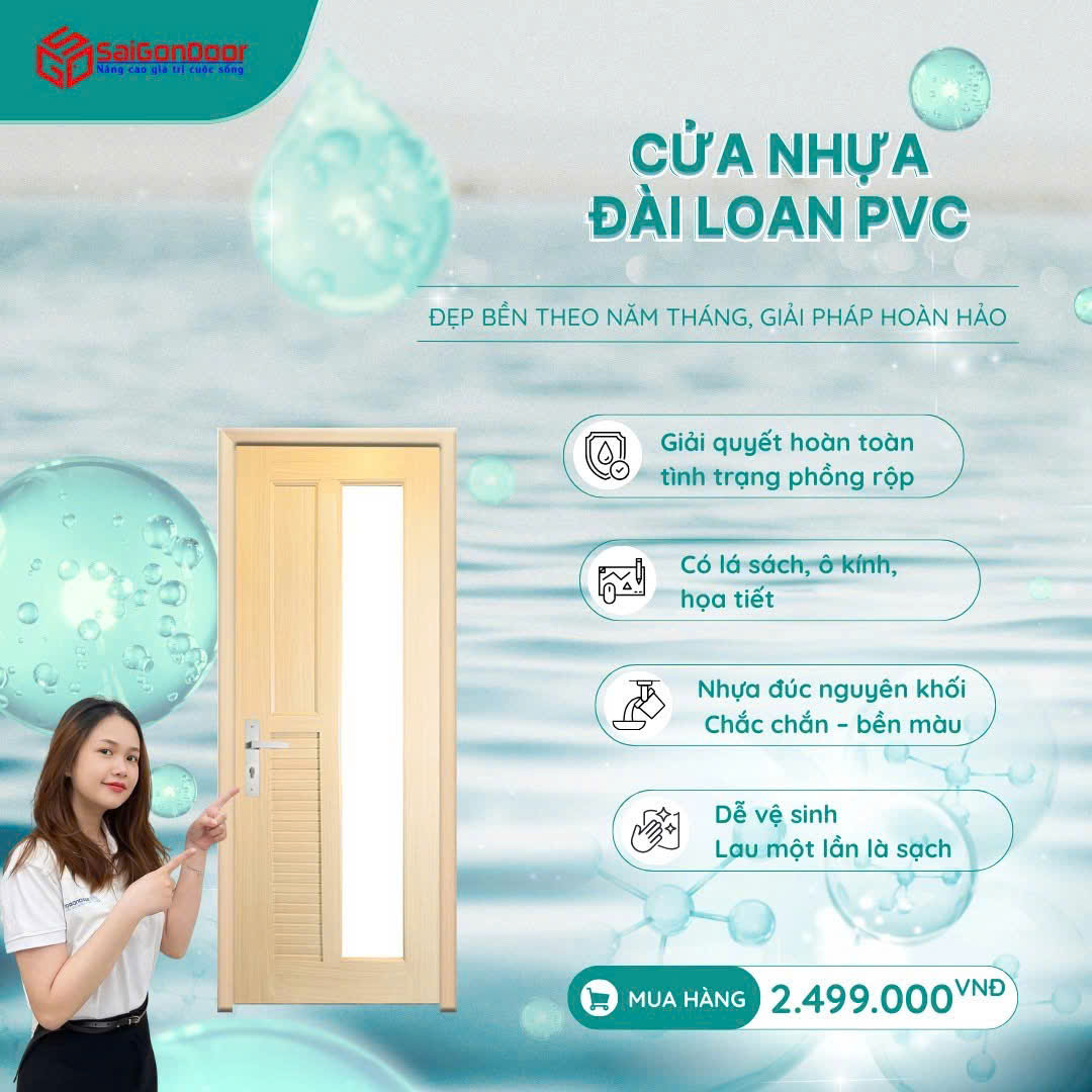 nhựa PVC cao cấp, cửa không có khả năng thấm nước, không bị nở rêu hay mục nát khi tiếp xúc