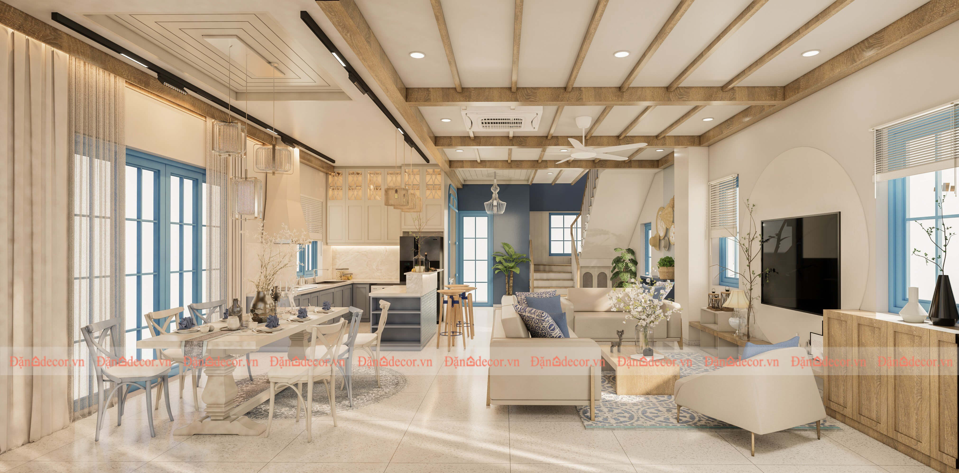 Hãy cùng chúng tôi khám phá thiết kế nội thất phòng bếp Villa Địa Trung Hải với không gian mở,