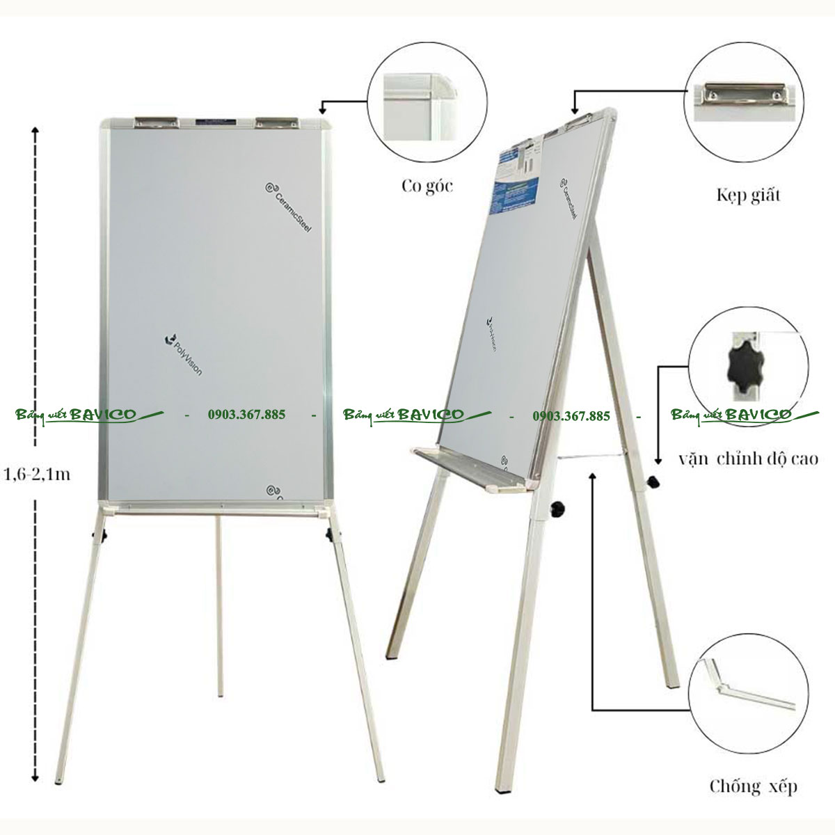 CẤU TẠO BẢNG FLIPCHART 3 CHÂN BẢNG TRẮNG TỪ CERAMIC CỦA BỈ