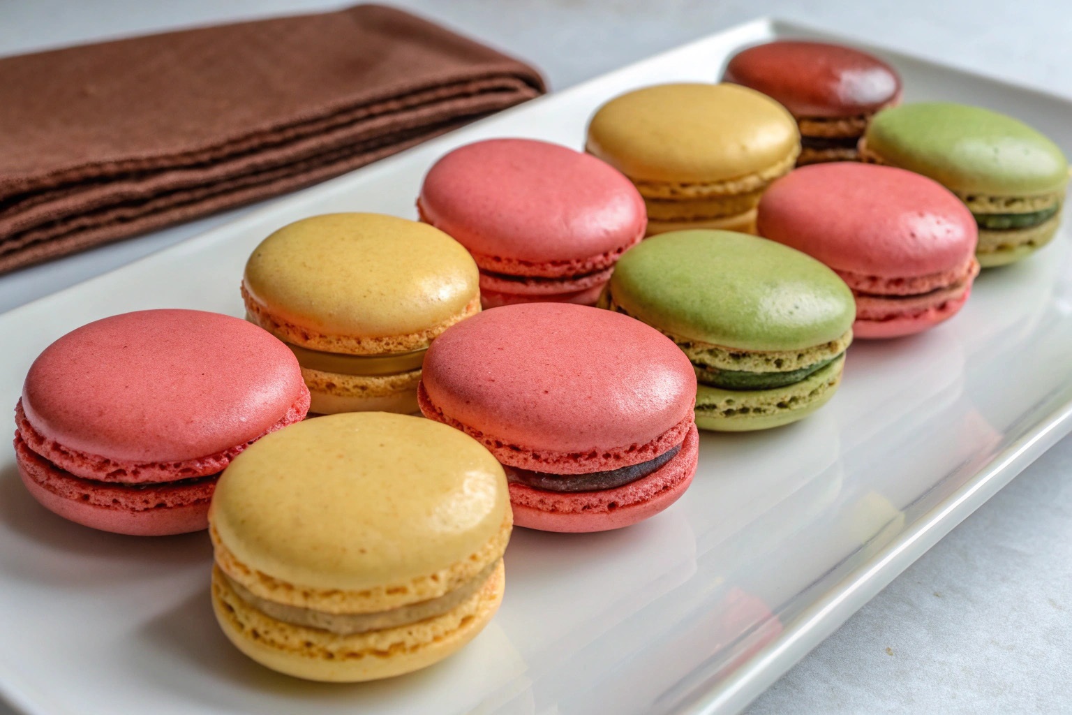 tự nhiên. Macaron phù hợp để dùng kèm trà nóng, cà phê hoặc làm món tráng miệng sau bữa ăn.