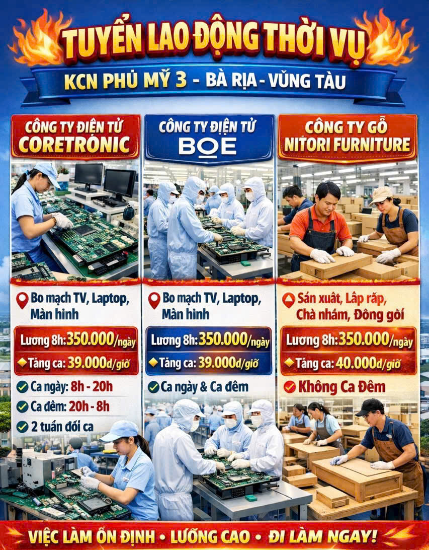 CÓ VIỆC LÀM NGAY – ĐI LÀM SỚM – THU NHẬP ỔN ĐỊNH
