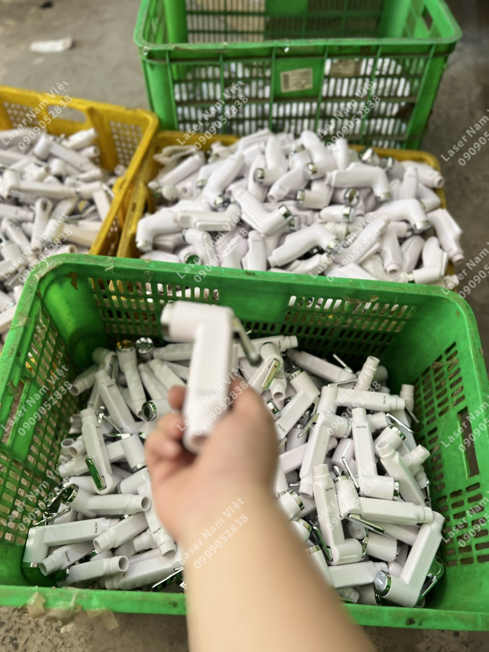 ✔ Khắc laser trên vòi xịt vệ sinh nhựa