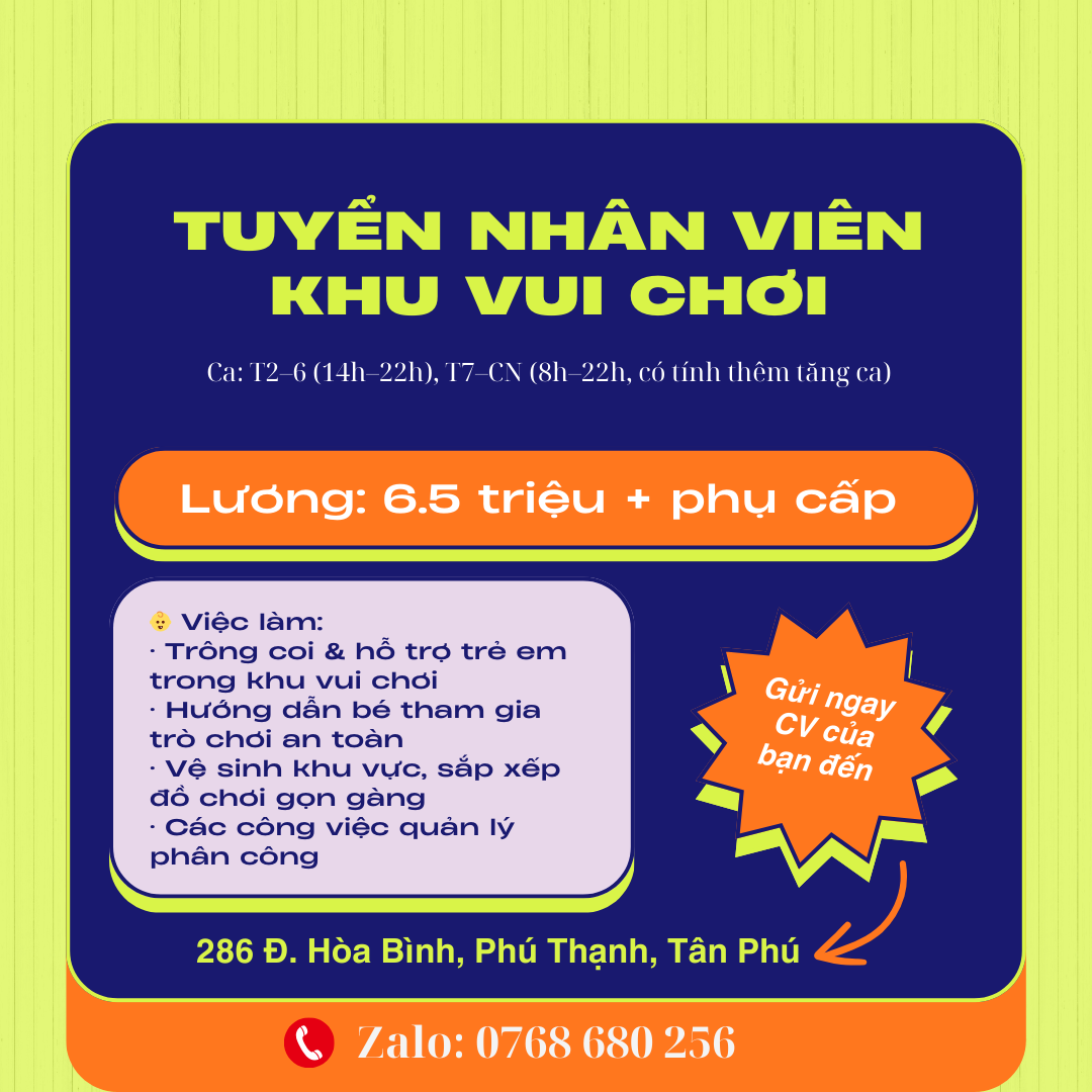 🌈 TUYỂN NHÂN VIÊN KHU VUI CHƠI – TÂN PHÚ 🌈