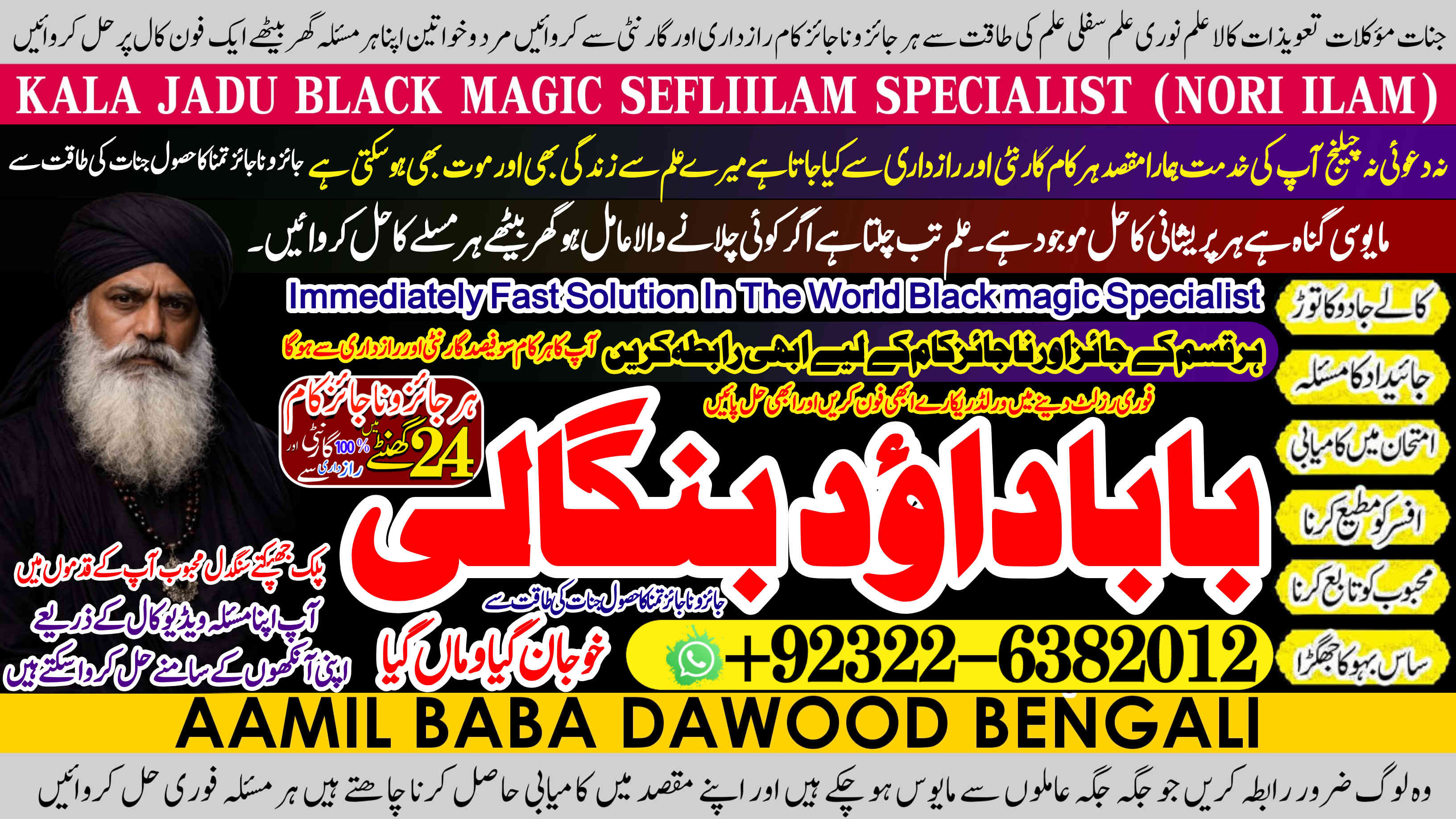 Amil Baba Dawood Bangali Contact on whatsapp +92322-6382012 is a renowned spiritual healer